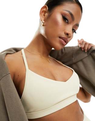 4505 baby rib scoop front strappy light support sports bra in buttermilk-White