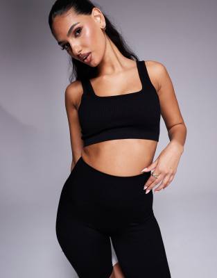 4505 Icon mid impact seamless rib sports bra with square neck in black