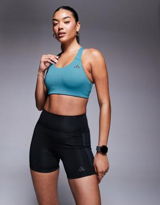 adidas Training Power mid support sports bra in teal-Green