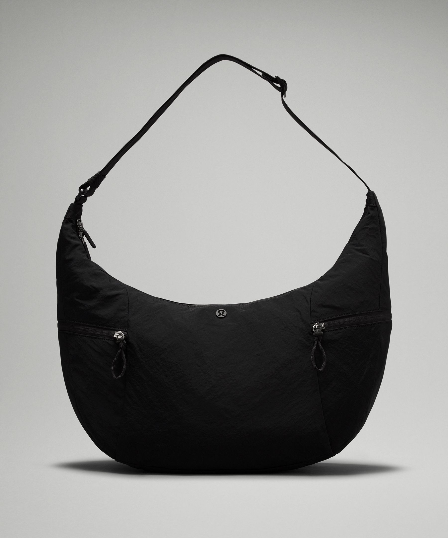 Water Repellant, Pocketed. Designed for Casual. Dimensions: W 45cm x D 12.5cm x H 39cm (17.7″ x 4.9″ x 15.4″). Volume: 13L. No structure, no problem. With a curved silhouette and a surprising amount of space, this slouchy sling tucks close to your frame for comfort and security. | lululemon – Large Slouchy Sling Bag 13L – Color Black