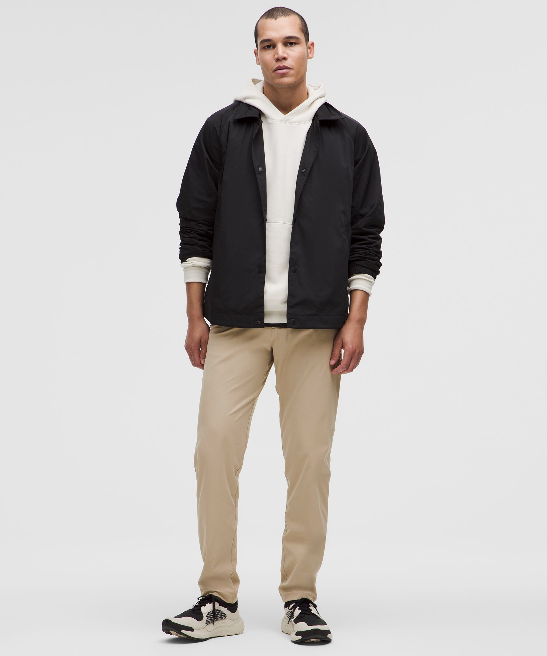 ABC Technology, Reflective, Pocketed. Designed for Casual. Streamlined fit that gives glutes and thighs breathing room. Tapers from knee to hem. Our ABC™ (Anti-Ball-Crushing) technology uses an ergonomic gusset to remove tension from the crotch of our pants so you can move in comfort. The five-pocket jean, reinvented. These classic-fit pants, powered by ABC technology, give you freedom of movement and all-day comfort. | lululemon – Men’s ABC Classic-Fit 5 Pocket Trousers 30L Warpstreme – Color Khaki – Size 39