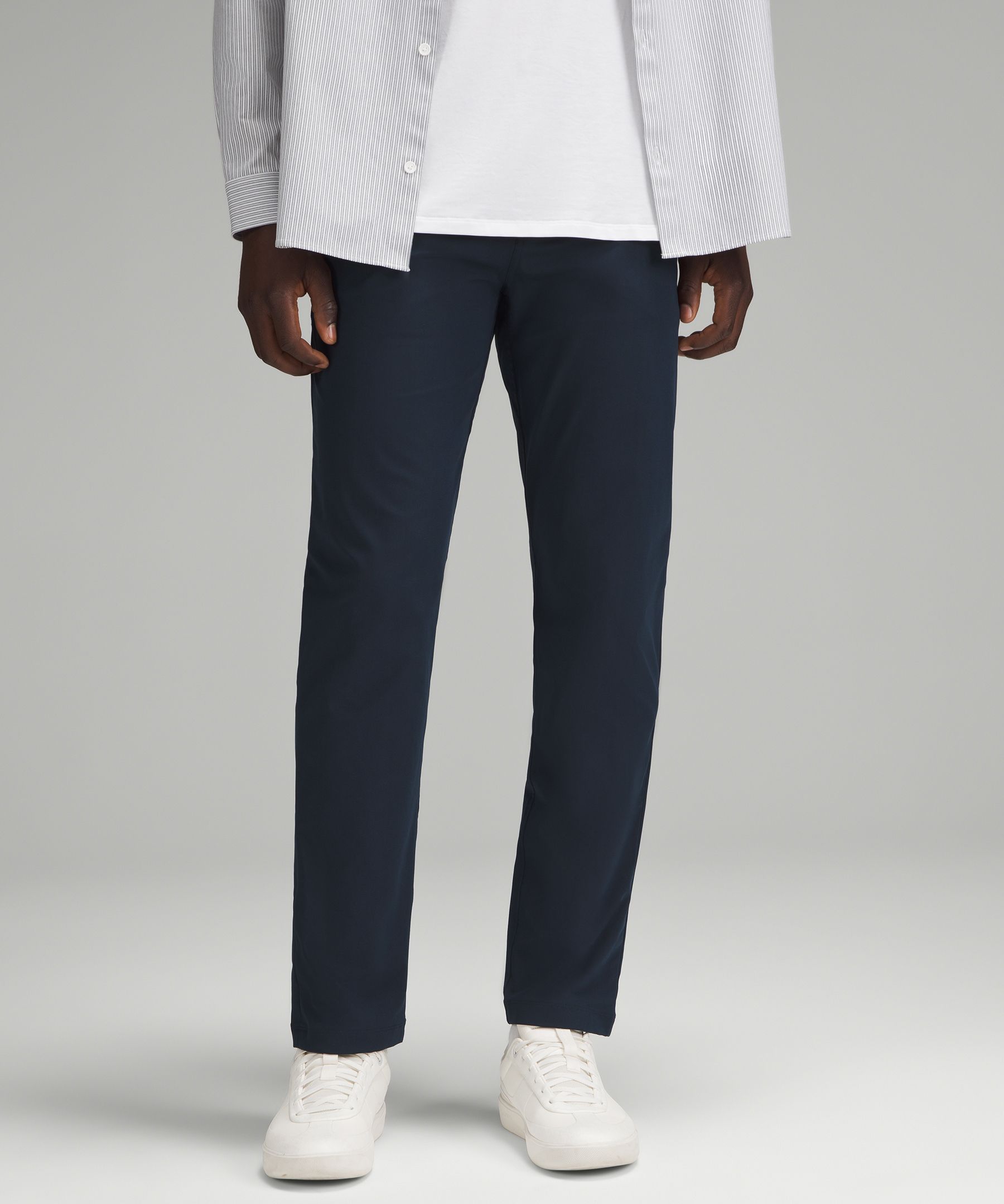 ABC Technology, Pocketed, Reflective. Designed for Casual. Streamlined fit that gives glutes and thighs breathing room. Tapers from knee to hem. Our ABC™ (Anti-Ball-Crushing) technology uses an ergonomic gusset to remove tension from the crotch of our pants so you can move in comfort. The five-pocket jean, reinvented. These classic-fit pants, powered by ABC technology, give you freedom of movement and all-day comfort. | lululemon – Men’s ABC Classic-Fit 5 Pocket Trousers 32L Warpstreme – Color Blue – Size 8