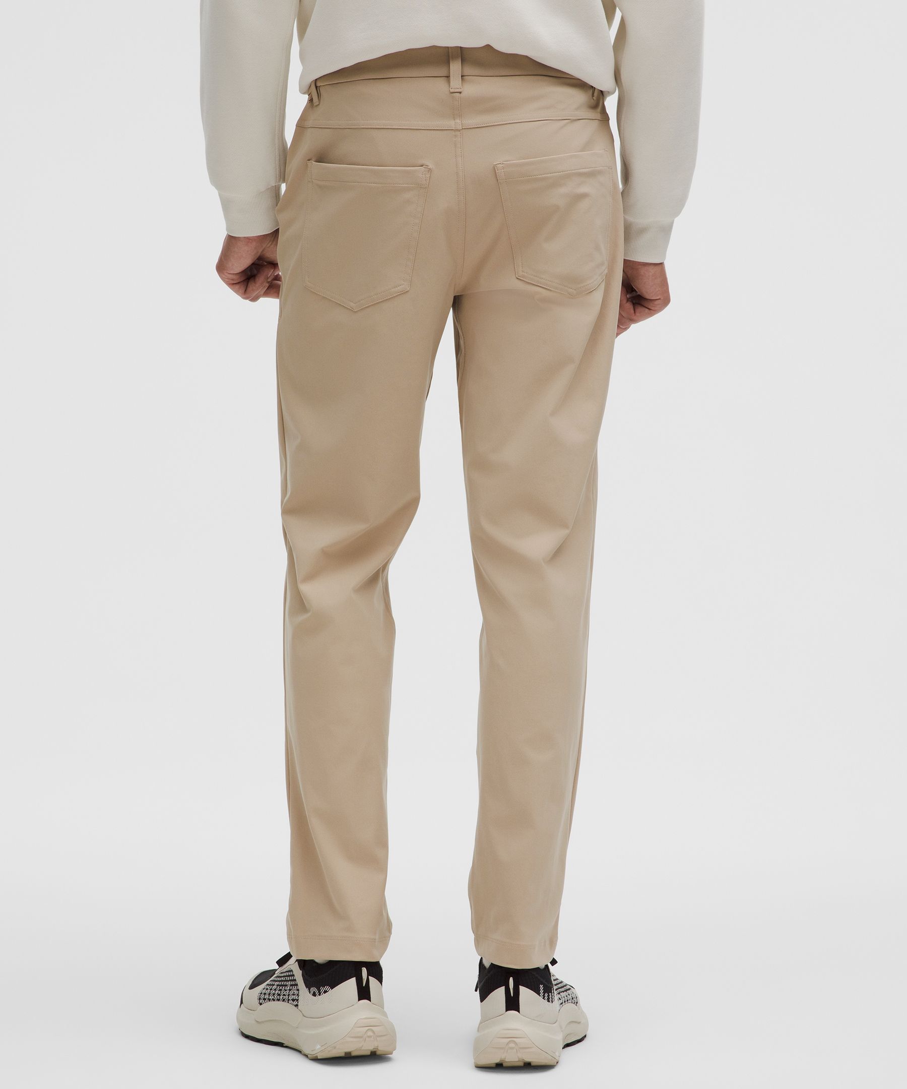 ABC Technology, Pocketed, Reflective. Designed for Casual. Streamlined fit that gives glutes and thighs breathing room. Tapers from knee to hem. Our ABC™ (Anti-Ball-Crushing) technology uses an ergonomic gusset to remove tension from the crotch of our pants so you can move in comfort. The five-pocket jean, reinvented. These classic-fit pants, powered by ABC technology, give you freedom of movement and all-day comfort. | lululemon – Men’s ABC Classic-Fit 5 Pocket Trousers 32L Warpstreme – Color Khaki – Size 4