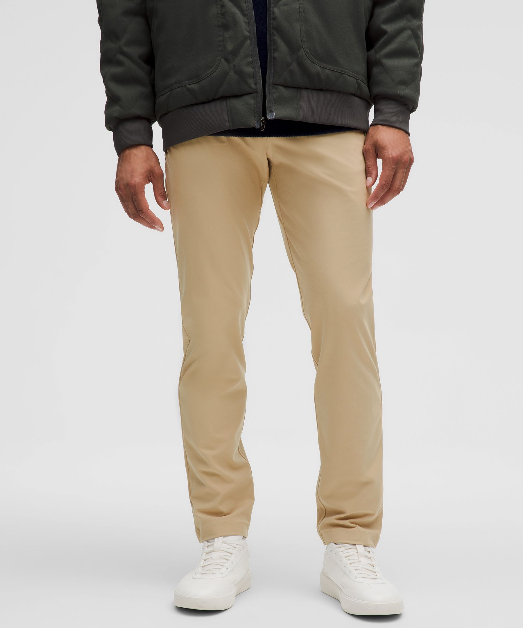 ABC Technology, Pocketed, Reflective. Designed for Casual. Streamlined fit that gives glutes and thighs breathing room. Tapers from knee to hem. Our ABC™ (Anti-Ball-Crushing) technology uses an ergonomic gusset to remove tension from the crotch of our pants so you can move in comfort. The five-pocket jean, reinvented. These classic-fit pants, powered by ABC technology, give you freedom of movement and all-day comfort. | lululemon – Men’s ABC Classic-Fit 5 Pocket Trousers 34L Warpstreme – Color Khaki – Size 6