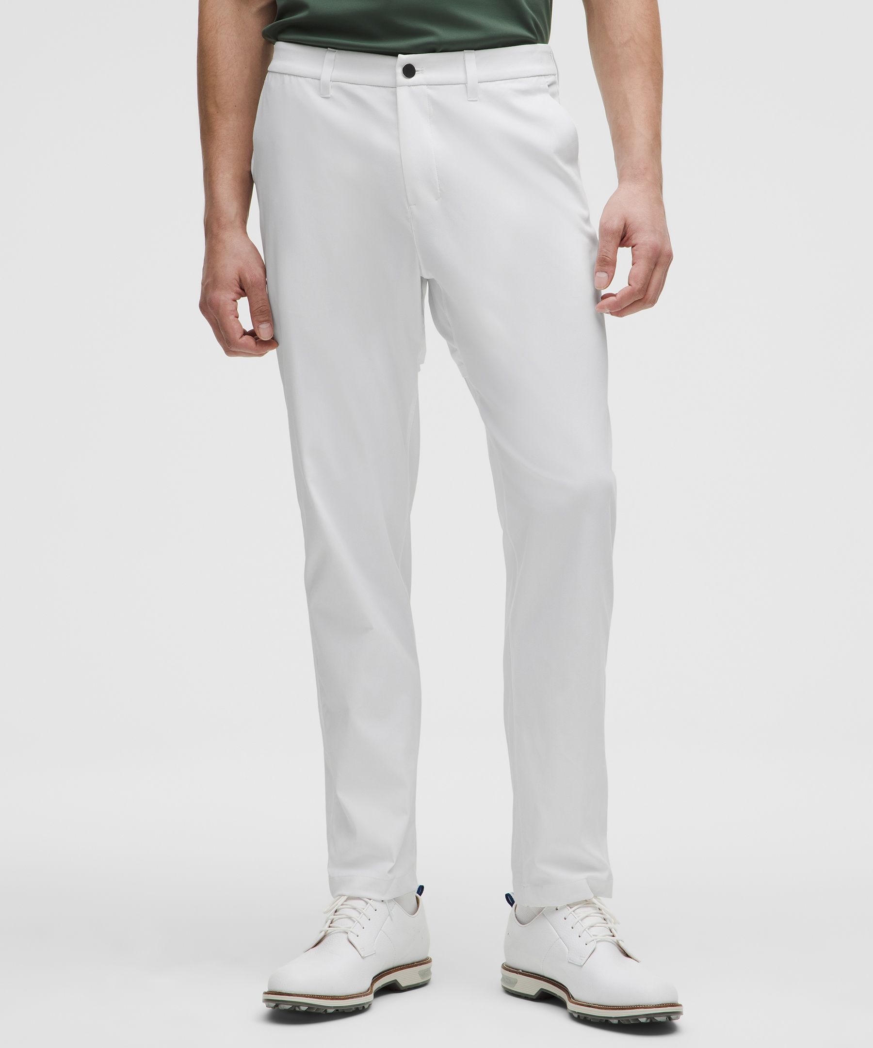 ABC Technology, Pocketed, Reflective. Designed for Golf. Streamlined fit that gives glutes and thighs breathing room. From first swing to the final round, these golf pants are at the top of their game. Integrated ventilation and stretch fabric deliver comfort that lasts on and off the course. | lululemon – Men’s ABC Classic-Fit Golf Trousers 32L – Color White – Size 8