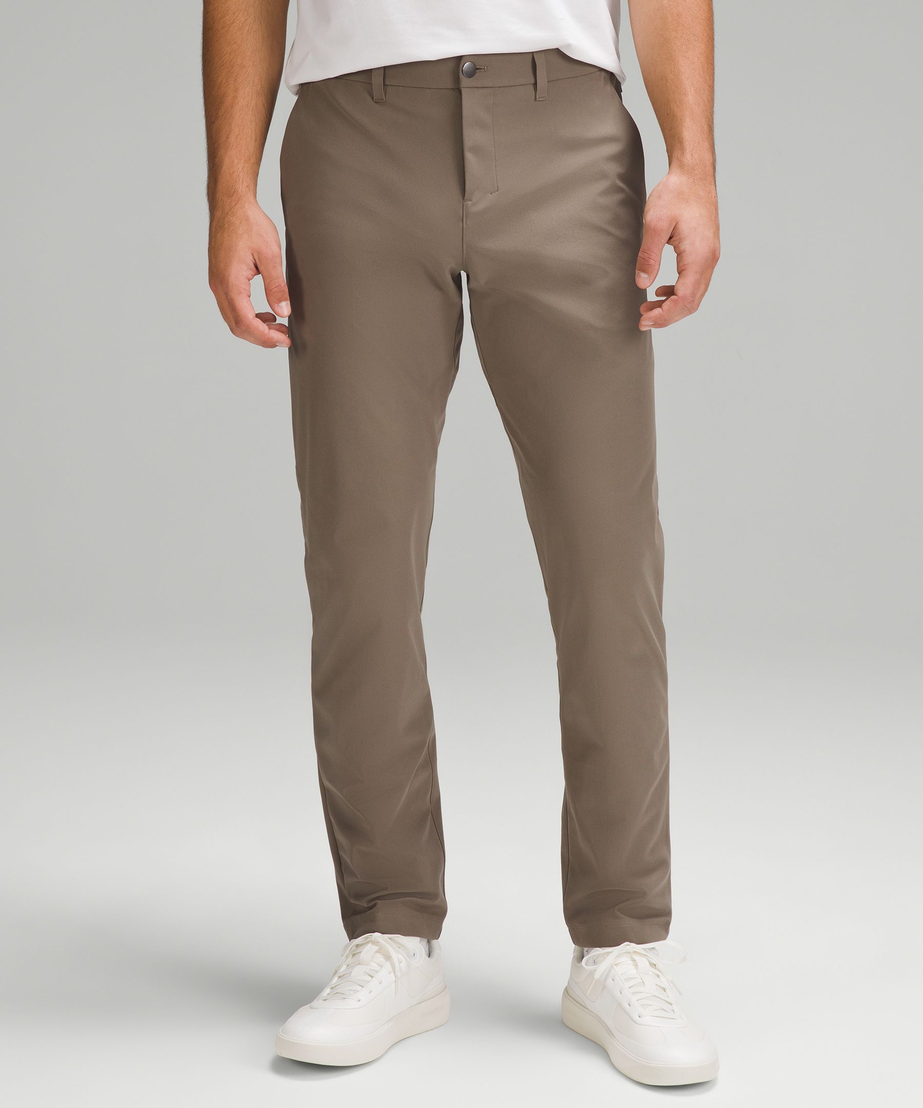 ABC Technology, Pocketed, Reflective. Designed for Casual. Streamlined fit that gives glutes and thighs breathing room. Our ABC™ (Anti-Ball-Crushing) technology uses an ergonomic gusset to remove tension from the crotch of our pants so you can move in comfort. These classic-fit trousers deliver all-day comfort with an elevated look. | lululemon – Men’s ABC Classic-Fit Trousers 32L Warpstreme – Color Brown – Size 6