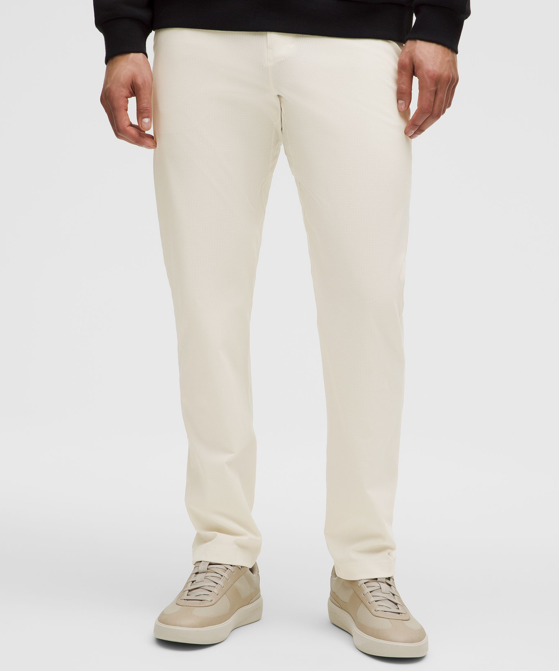 ABC Technology, Pocketed, Reflective. Designed for Casual. Streamlined fit that gives glutes and thighs breathing room. Our ABC™ (Anti-Ball-Crushing) technology uses an ergonomic gusset to remove tension from the crotch of our pants so you can move in comfort. These classic-fit trousers deliver all-day comfort with an elevated look. | lululemon – Men’s ABC Classic-Fit Trousers 34L – Color White – Size 12