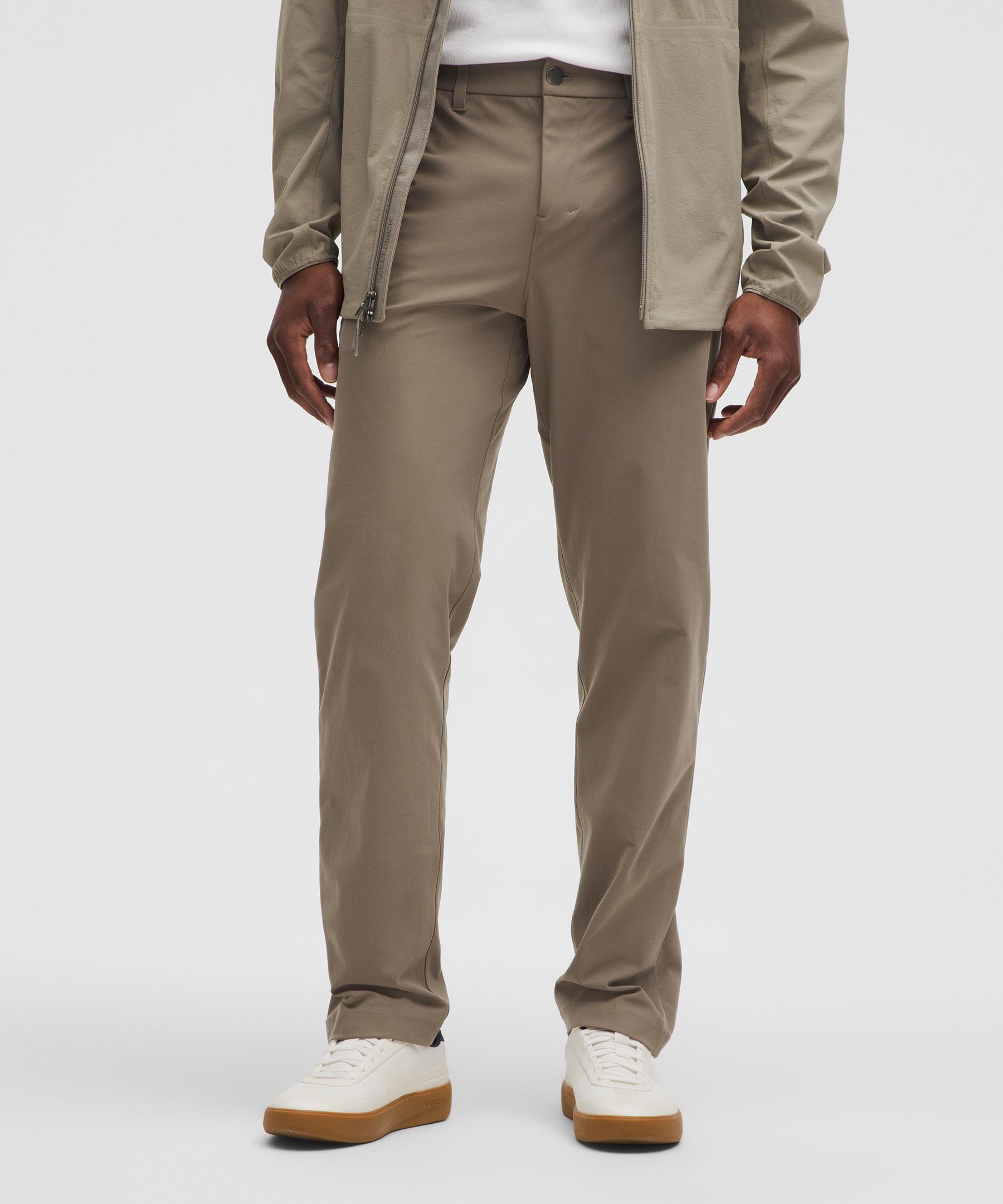 ABC Technology, Pocketed, Reflective. Designed for Casual. Streamlined fit that gives glutes and thighs breathing room. Our ABC™ (Anti-Ball-Crushing) technology uses an ergonomic gusset to remove tension from the crotch of our pants so you can move in comfort. These classic-fit trousers deliver all-day comfort with an elevated look. | lululemon – Men’s ABC Classic-Fit Trousers 34L Warpstreme – Color Brown – Size 6