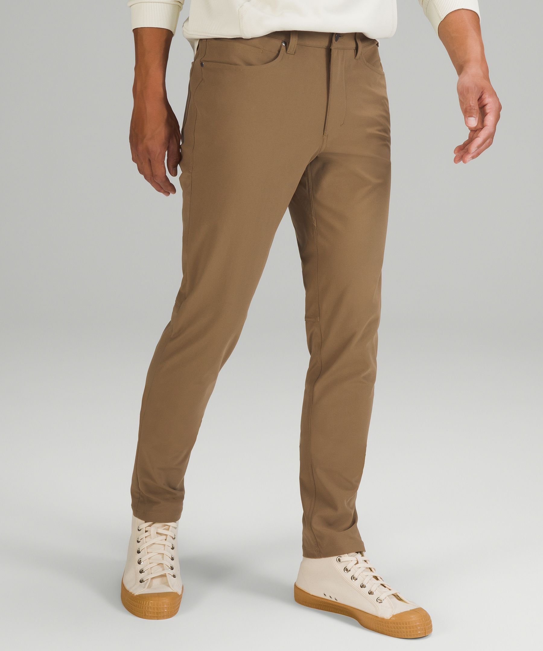ABC Technology, Pocketed, Reflective. Designed for Casual. Slim fit that skims glutes and thighs. Tapers from knee to hem. Our ABC™ (Anti-Ball-Crushing) technology uses an ergonomic gusset to remove tension from the crotch of our pants so you can move in comfort. The five-pocket jean, reinvented. These slim-fit pants, powered by ABC technology, give you freedom of movement and all-day comfort. | lululemon – Men’s ABC Slim-Fit 5 Pocket Trousers 28L Warpstreme – Color Brown – Size 8