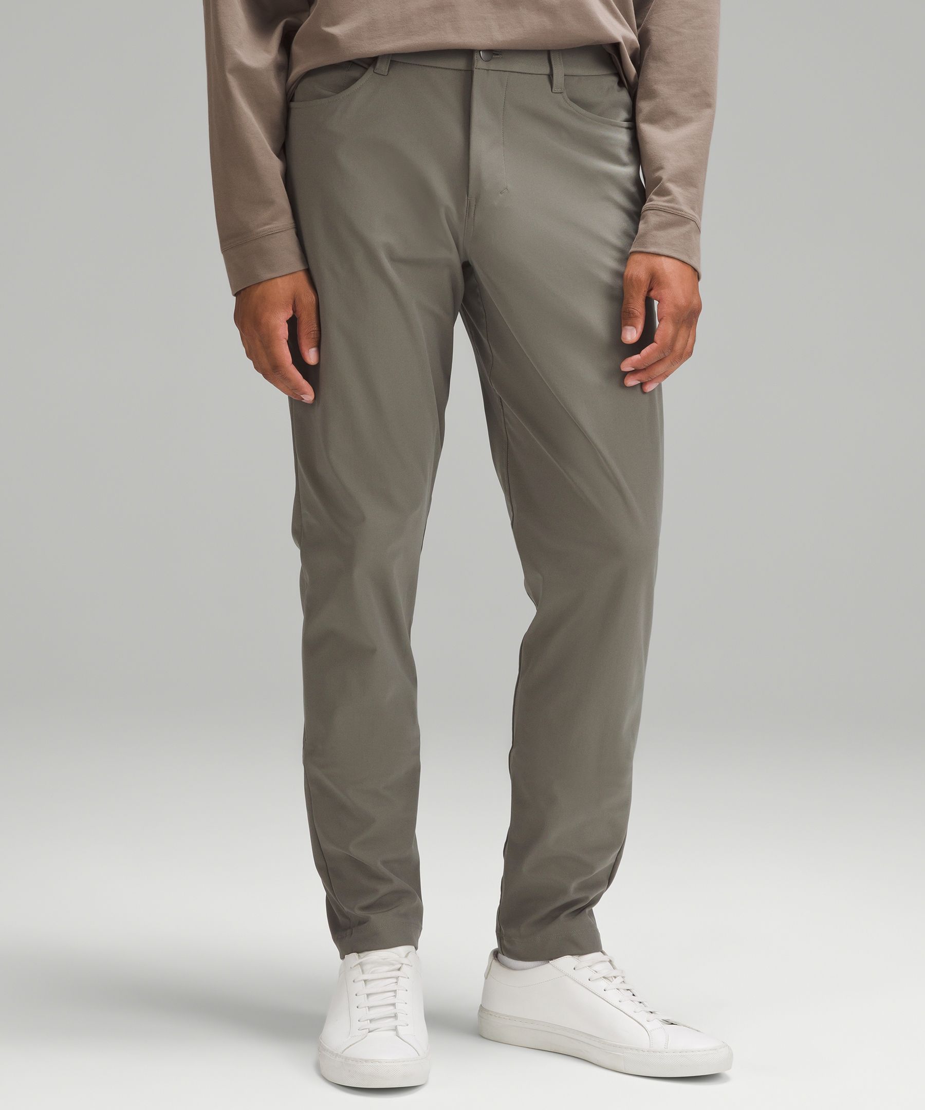 ABC Technology, Pocketed, Reflective. Designed for Casual. Slim fit that skims glutes and thighs. Tapers from knee to hem. Our ABC™ (Anti-Ball-Crushing) technology uses an ergonomic gusset to remove tension from the crotch of our pants so you can move in comfort. The five-pocket jean, reinvented. These slim-fit pants, powered by ABC technology, give you freedom of movement and all-day comfort. | lululemon – Men’s ABC Slim-Fit 5 Pocket Trousers 30L Warpstreme – Color Grey – Size 12