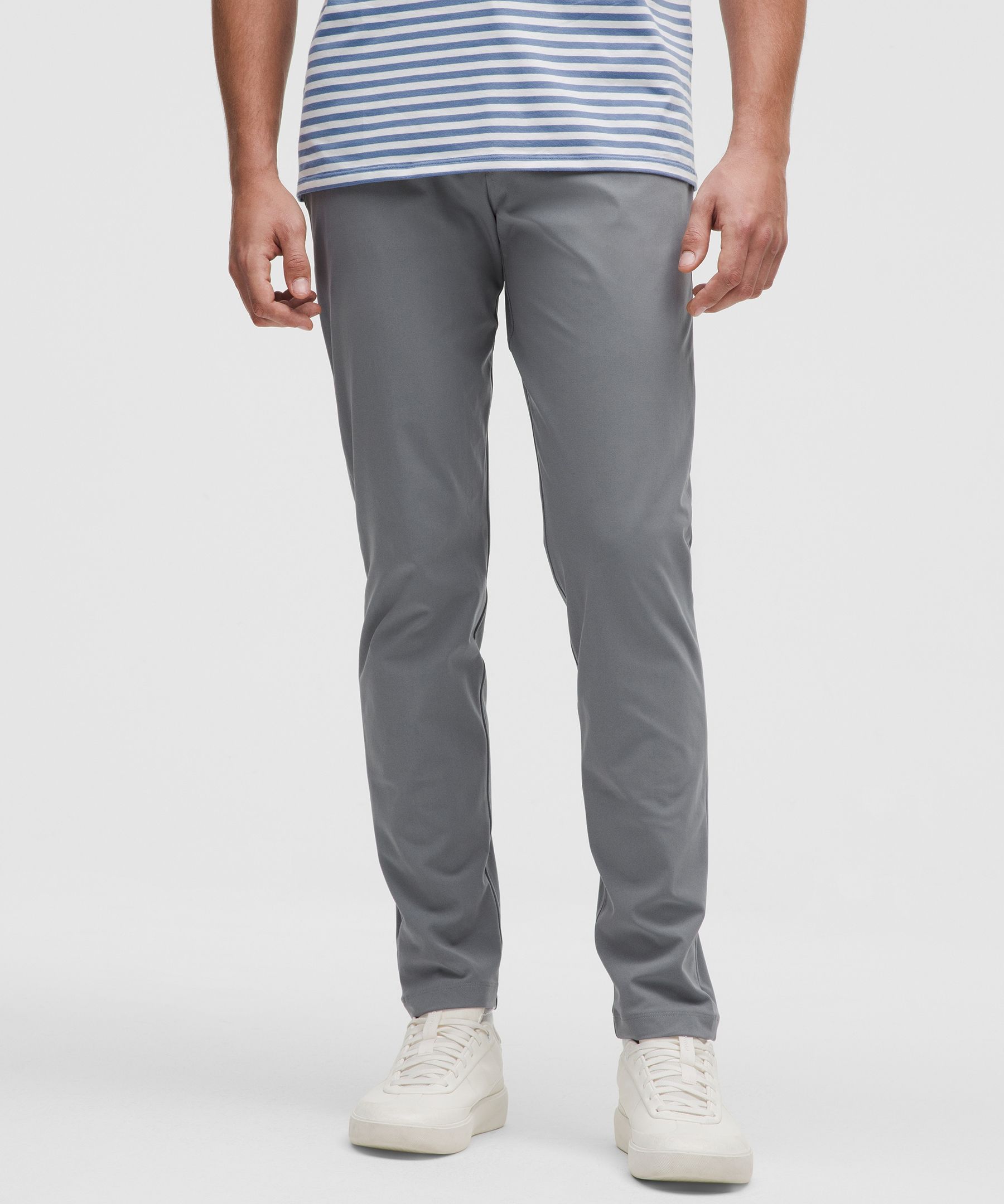 ABC Technology, Pocketed, Reflective. Designed for Casual. Slim fit that skims glutes and thighs. Tapers from knee to hem. Our ABC™ (Anti-Ball-Crushing) technology uses an ergonomic gusset to remove tension from the crotch of our pants so you can move in comfort. The five-pocket jean, reinvented. These slim-fit pants, powered by ABC technology, give you freedom of movement and all-day comfort. | lululemon – Men’s ABC Slim-Fit 5 Pocket Trousers 30L Warpstreme – Color Grey – Size 6