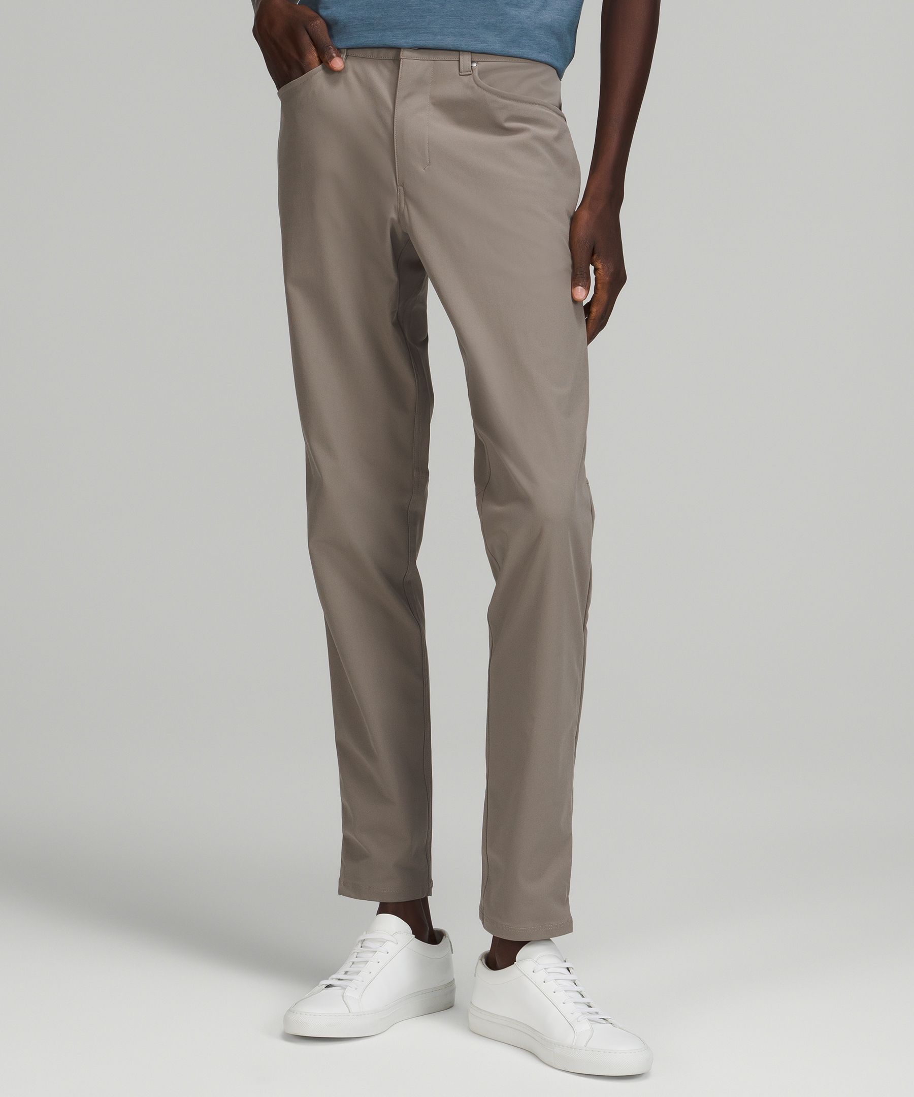 ABC Technology, Pocketed, Reflective. Designed for Casual. Slim fit that skims glutes and thighs. Our ABC™ (Anti-Ball-Crushing) technology uses an ergonomic gusset to remove tension from the crotch of our pants so you can move in comfort. The five-pocket jean, reinvented. These slim-fit pants, powered by ABC technology, give you freedom of movement and all-day comfort. | lululemon – Men’s ABC Slim-Fit 5 Pocket Trousers 32L Warpstreme – Color Grey – Size 12