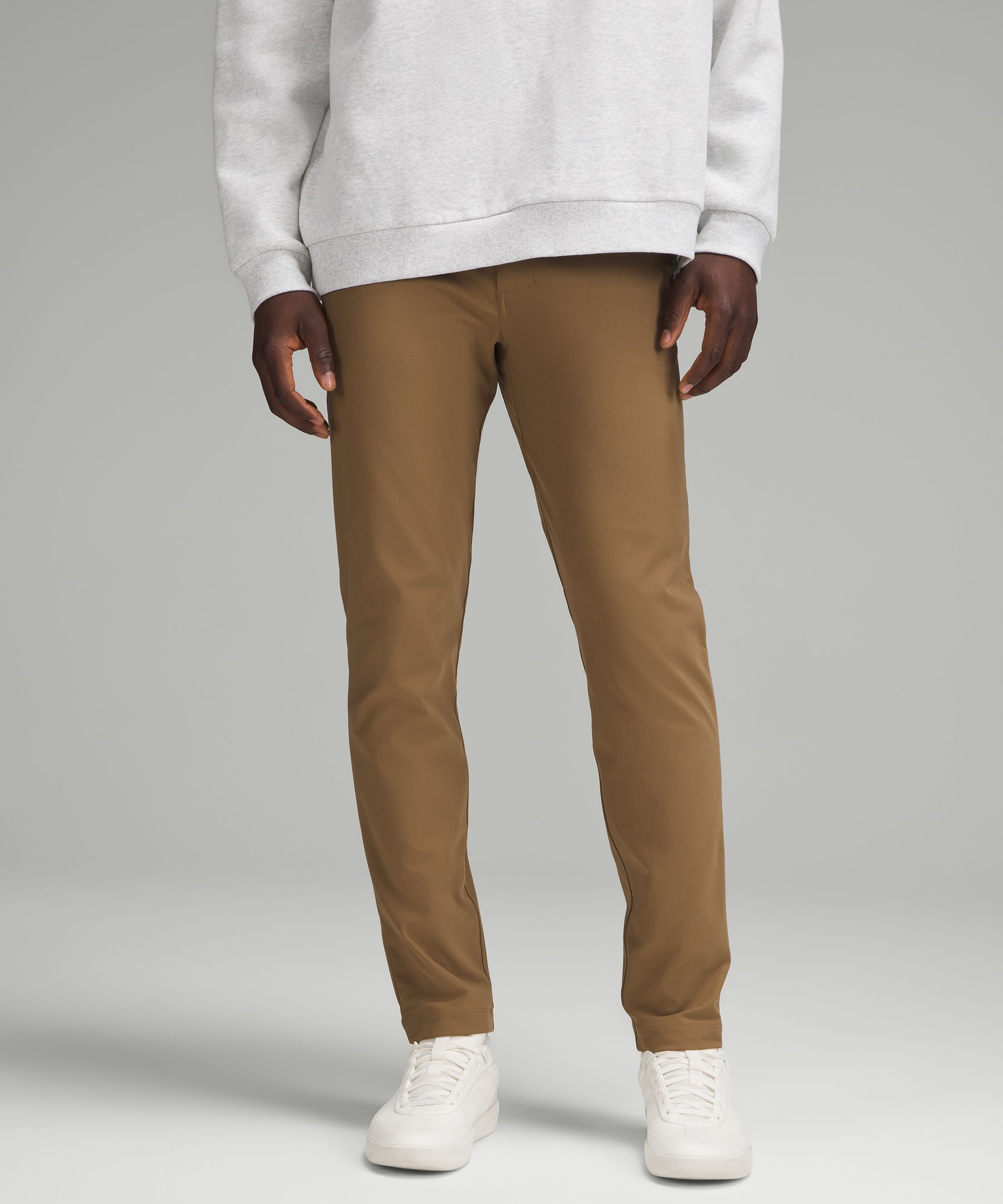 ABC Technology, Pocketed, Reflective. Designed for Casual. Slim fit that skims glutes and thighs. Tapers from knee to hem. Our ABC™ (Anti-Ball-Crushing) technology uses an ergonomic gusset to remove tension from the crotch of our pants so you can move in comfort. The five-pocket jean, reinvented. These slim-fit pants, powered by ABC technology, give you freedom of movement and all-day comfort. | lululemon – Men’s ABC Slim-Fit 5 Pocket Trousers 34L Warpstreme – Color Brown – Size 8