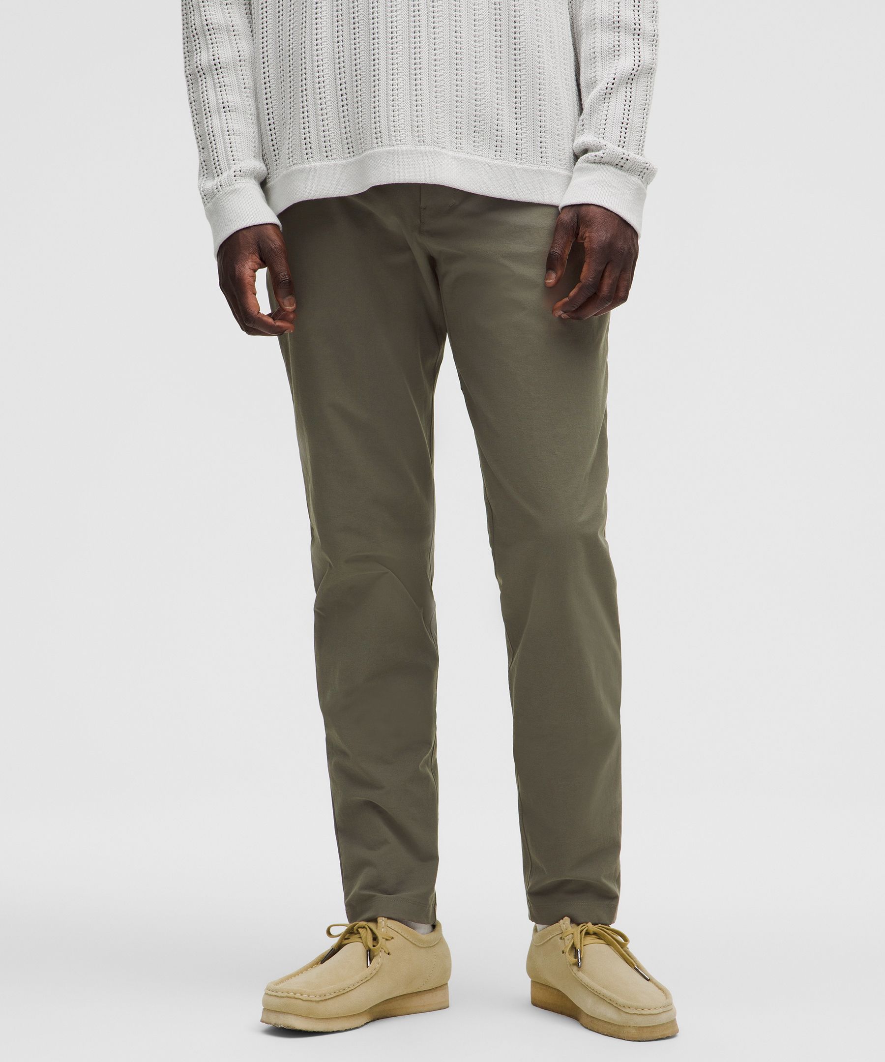 ABC Technology, Anti Stink, Reflective, Pocketed. Designed for Casual. Slim fit that skims glutes and thighs. Our ABC™ (Anti-Ball-Crushing) technology uses an ergonomic gusset to remove tension from the crotch of our pants so you can move in comfort. These slim-fit trousers deliver all-day comfort with an elevated look. | lululemon – Men’s ABC Slim-Fit Trousers 30L Stretch Cotton VersaTwill – Color Green – Size 8