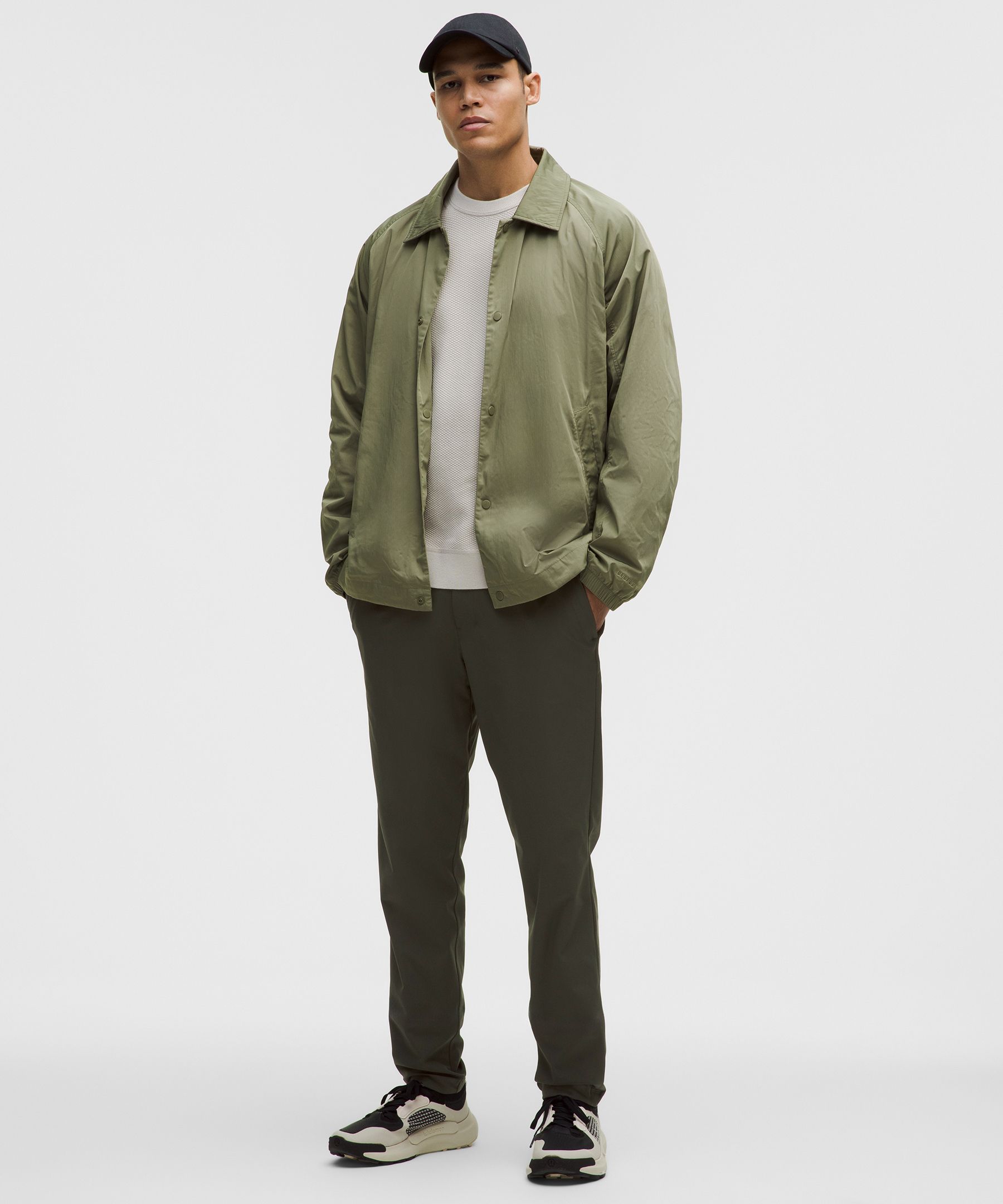 ABC Technology, Pocketed. Designed for Casual. Slim fit that skims glutes and thighs. Tapers from thigh to hem. Our ABC™ (Anti-Ball-Crushing) technology uses an ergonomic gusset to remove tension from the crotch of our pants so you can move in comfort. These slim-fit trousers deliver all-day comfort with an elevated look. | lululemon – Men’s ABC Slim-Fit Trousers 30L Warpstreme – Color Green – Size 6