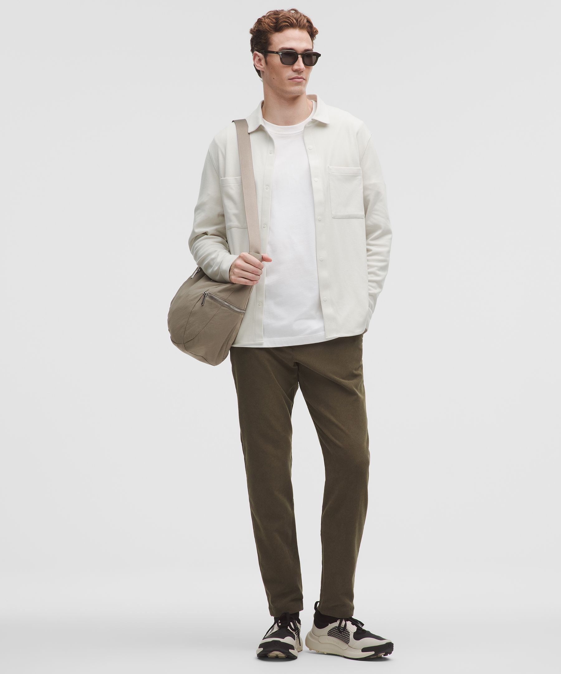Pocketed, Reflective, Anti Stink. Designed for Casual. Slim fit that skims glutes and thighs. Our ABC™ (Anti-Ball-Crushing) technology uses an ergonomic gusset to remove tension from the crotch of our pants so you can move in comfort. These slim-fit trousers deliver all-day comfort with an elevated look. | lululemon – Men’s ABC Slim-Fit Trousers 32L Corduroy – Color Brown/Green – Size 6