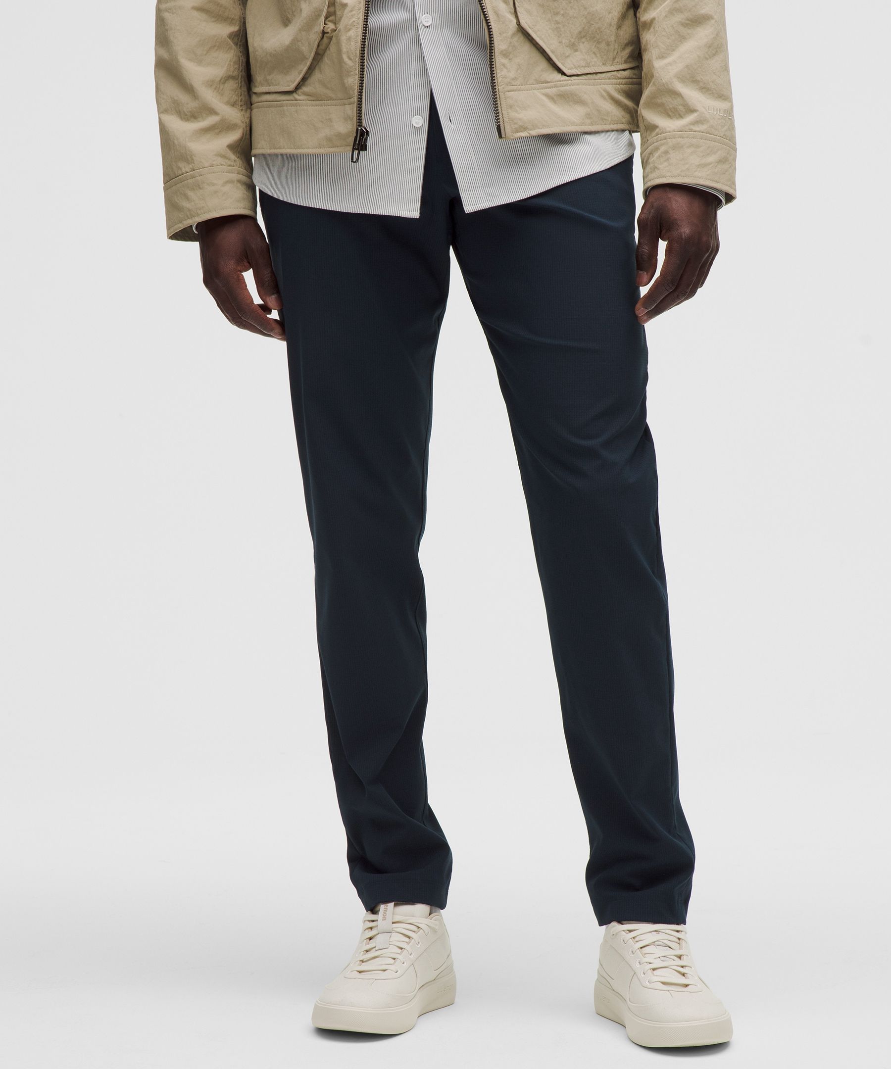 ABC Technology, Reflective, Pocketed. Designed for Casual. Slim fit that skims glutes and thighs. Our ABC™ (Anti-Ball-Crushing) technology uses an ergonomic gusset to remove tension from the crotch of our pants so you can move in comfort. These slim-fit trousers deliver all-day comfort with an elevated look. | lululemon – Men’s ABC Slim-Fit Trousers 34L – Color Blue – Size 6