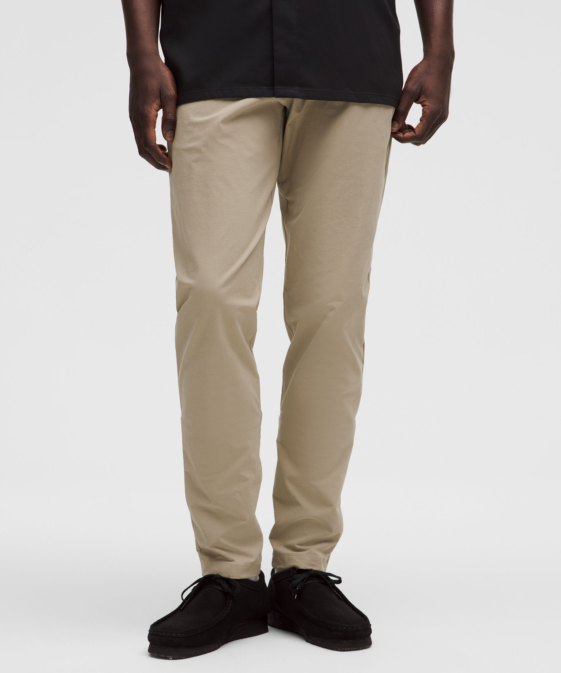 ABC Technology, Anti Stink, Reflective, Pocketed. Designed for Casual. Slim fit that skims glutes and thighs. Our ABC™ (Anti-Ball-Crushing) technology uses an ergonomic gusset to remove tension from the crotch of our pants so you can move in comfort. These slim-fit trousers deliver all-day comfort with an elevated look. | lululemon – Men’s ABC Slim-Fit Trousers 34L Stretch Cotton VersaTwill – Color Brown – Size 4
