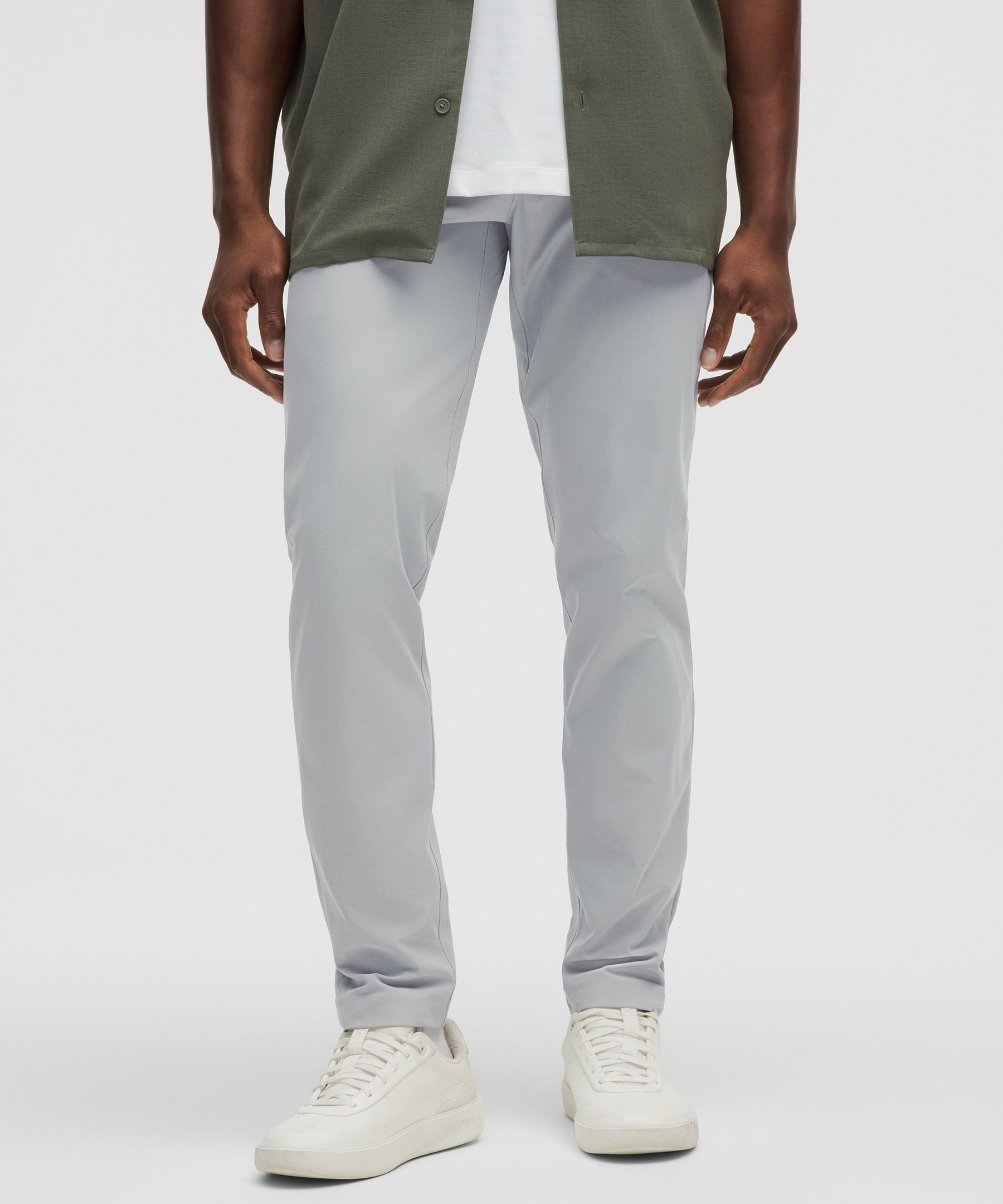 ABC Technology, Pocketed, Reflective. Designed for Casual. Slim fit that skims glutes and thighs. Our ABC™ (Anti-Ball-Crushing) technology uses an ergonomic gusset to remove tension from the crotch of our pants so you can move in comfort. These slim-fit trousers deliver all-day comfort with an elevated look. | lululemon – Men’s ABC Slim-Fit Trousers 34L Warpstreme – Color Silver/Grey – Size 12