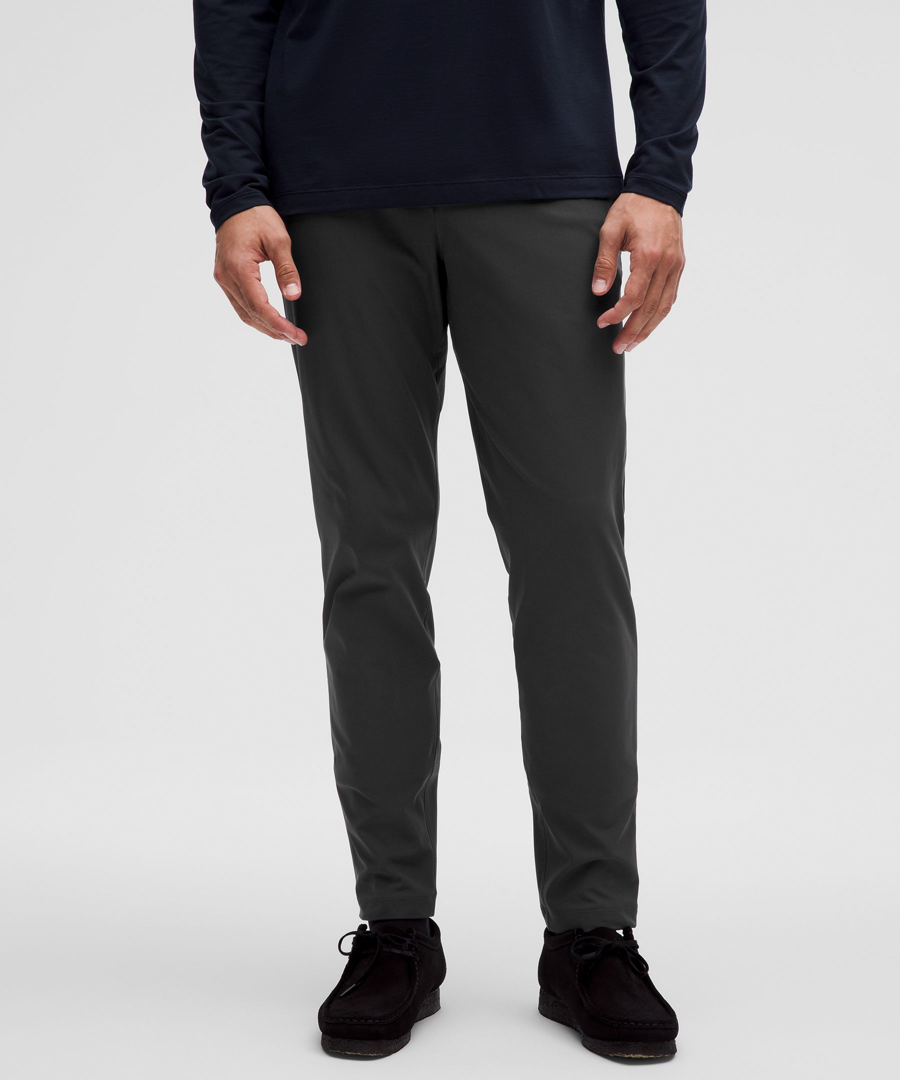 ABC Technology, Pocketed. Designed for Casual. Slim fit that skims glutes and thighs. Tapers from thigh to hem. Our ABC™ (Anti-Ball-Crushing) technology uses an ergonomic gusset to remove tension from the crotch of our pants so you can move in comfort. These slim-fit trousers deliver all-day comfort with an elevated look. | lululemon – Men’s ABC Slim-Fit Trousers 37L Warpstreme – Color Black – Size 12