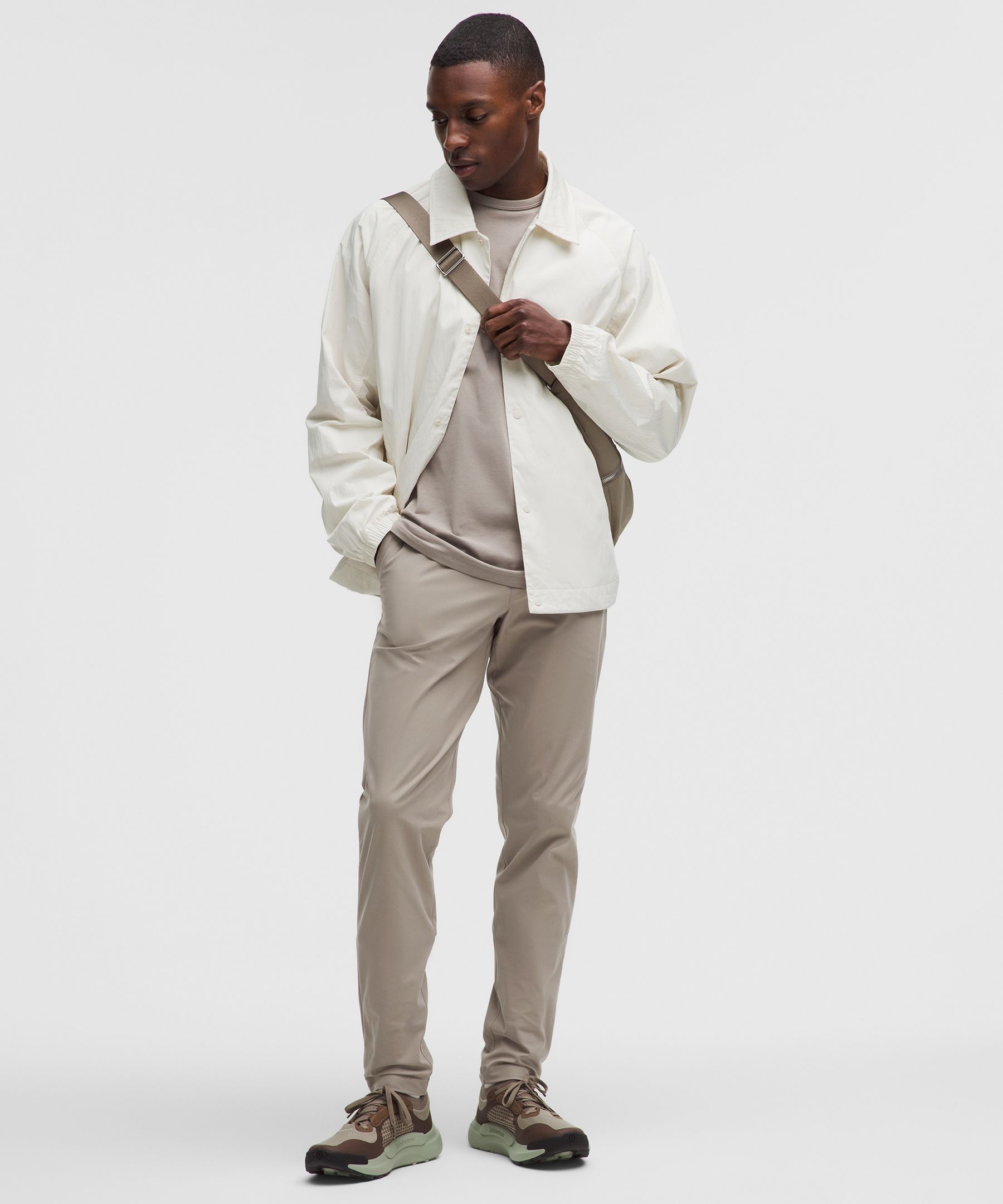 ABC Technology, Pocketed, Reflective. Designed for Casual. Slim fit that skims glutes and thighs. Our ABC™ (Anti-Ball-Crushing) technology uses an ergonomic gusset to remove tension from the crotch of our pants so you can move in comfort. These slim-fit trousers deliver all-day comfort with an elevated look. | lululemon – Men’s ABC Slim-Fit Trousers 4L Warpstreme – Color Grey/Khaki – Size 4