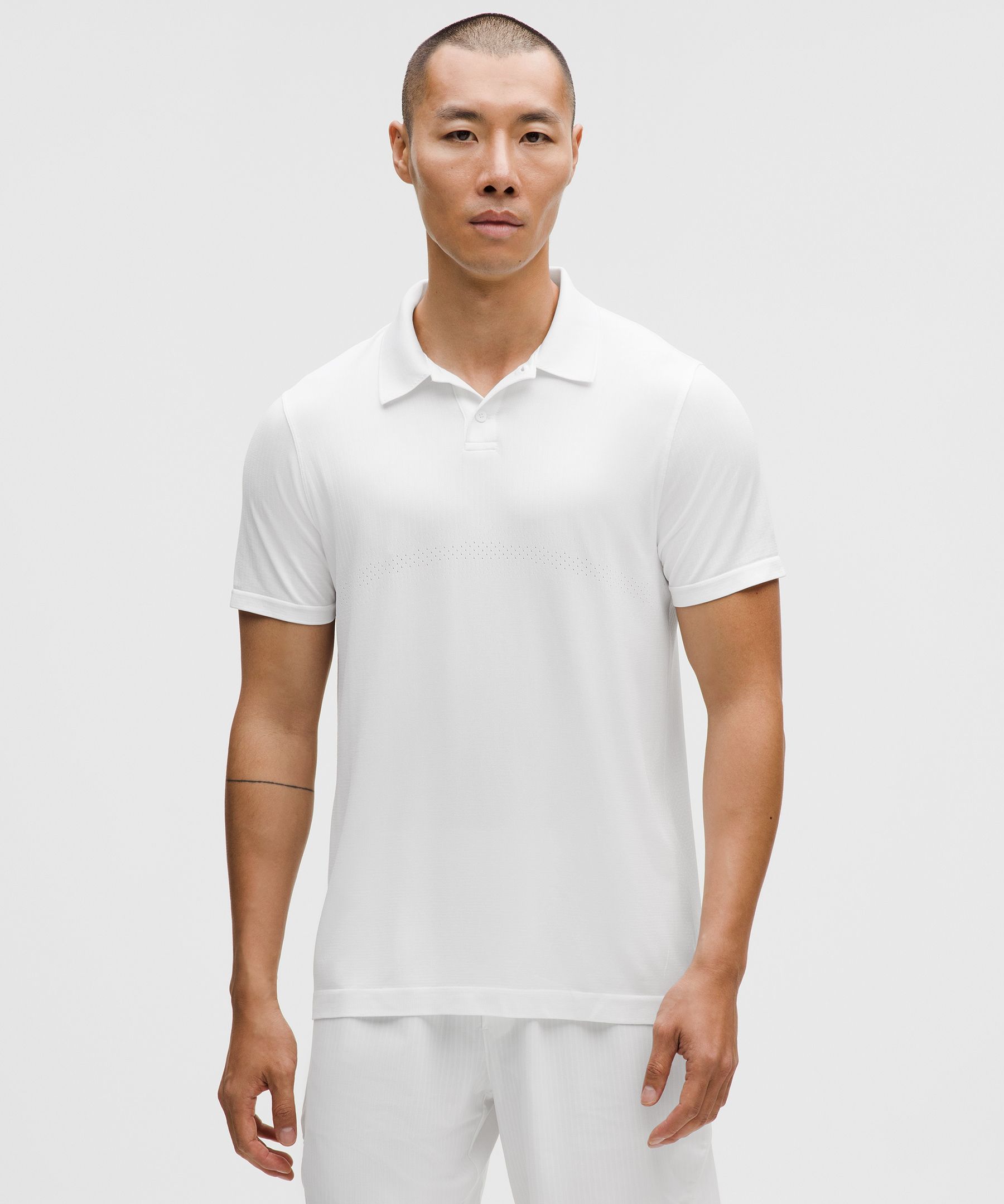 Designed for Tennis. Designed to skim the body from chest to waist. Ace the airflow. Made with seamless technology, this breezy tennis shirt has open-knit mesh ventilation to keep you feeling cool and comfortable on the court. | lululemon – Men’s Knit Short-Sleeve Tennis Polo – Color White – Size Small