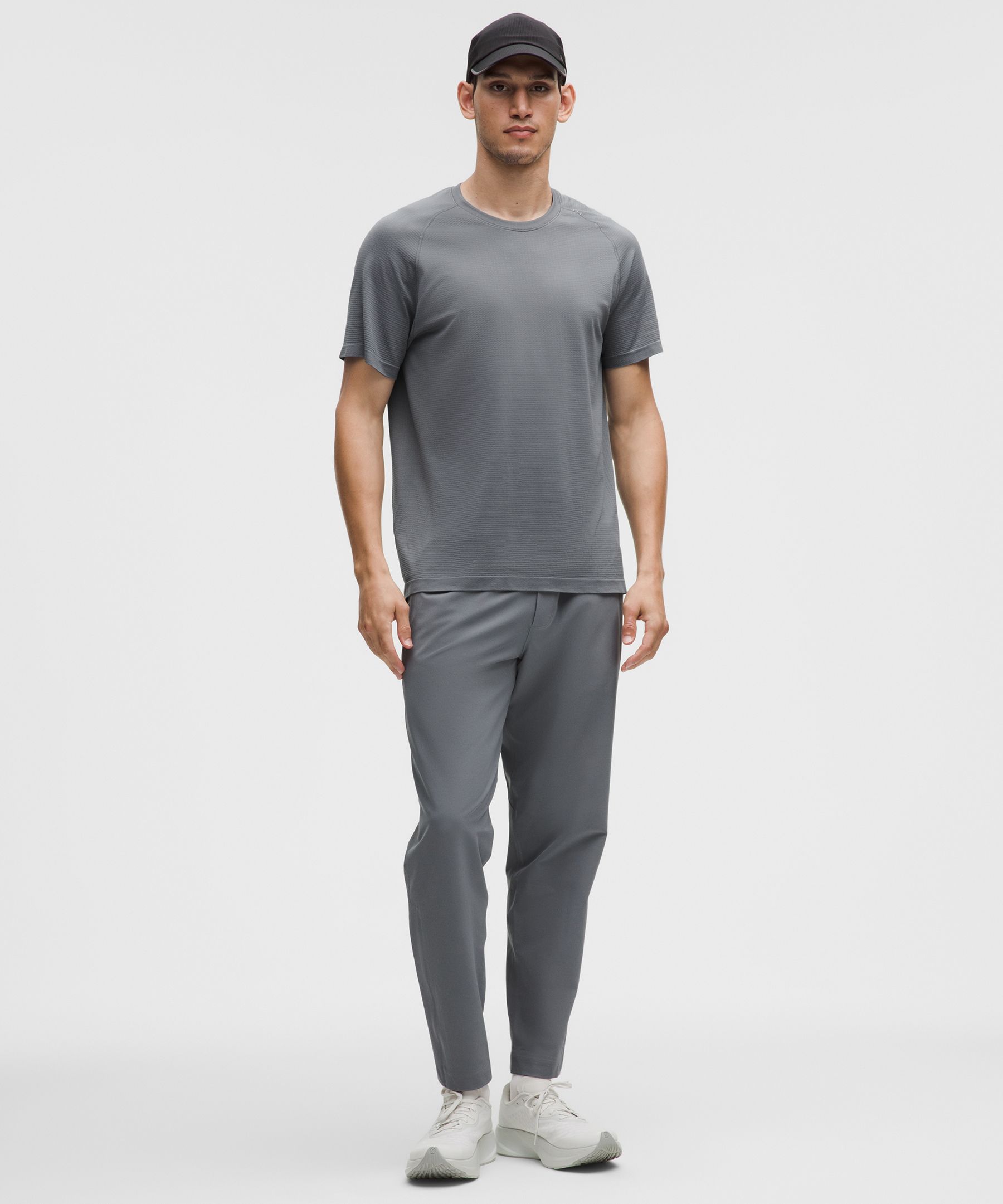 Water Repellant, Pocketed, Drawstring, Reflective. Designed for Running. Slim fit skims glutes and thighs, then tapers to hem. Intended to sit at ankle for 32″-34″ inseam. Misty morning miles. Element protection on the front and breathability on the back of these pants helps keep you covered even when it’s wet. | lululemon – Men’s Mile Maker Cold-Weather Trousers Regular – Color Grey – Size 6