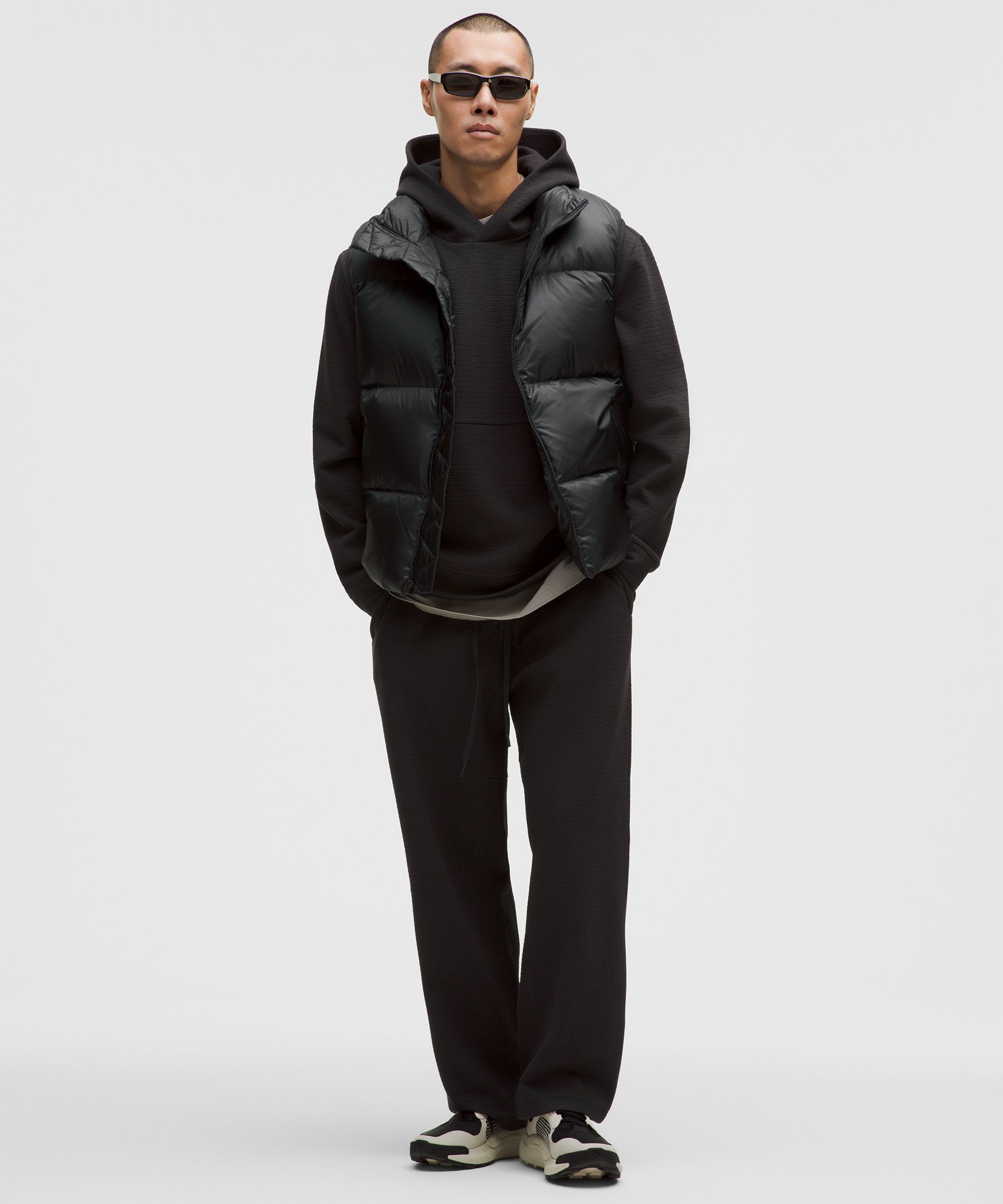 Pocketed, Drawstring. Designed for Casual. Roomy fit falls straight down from glutes to hem. Intended to sit just below ankle for 32″-34″ inseam. Warm up and cool down in comfort. These textured pants are made of four-way stretch, quick-drying fabric-making it easy to go from stretch to sweat to street. | lululemon – Men’s Textured Spacer Relaxed Straight Trousers – Color Black – Size XS