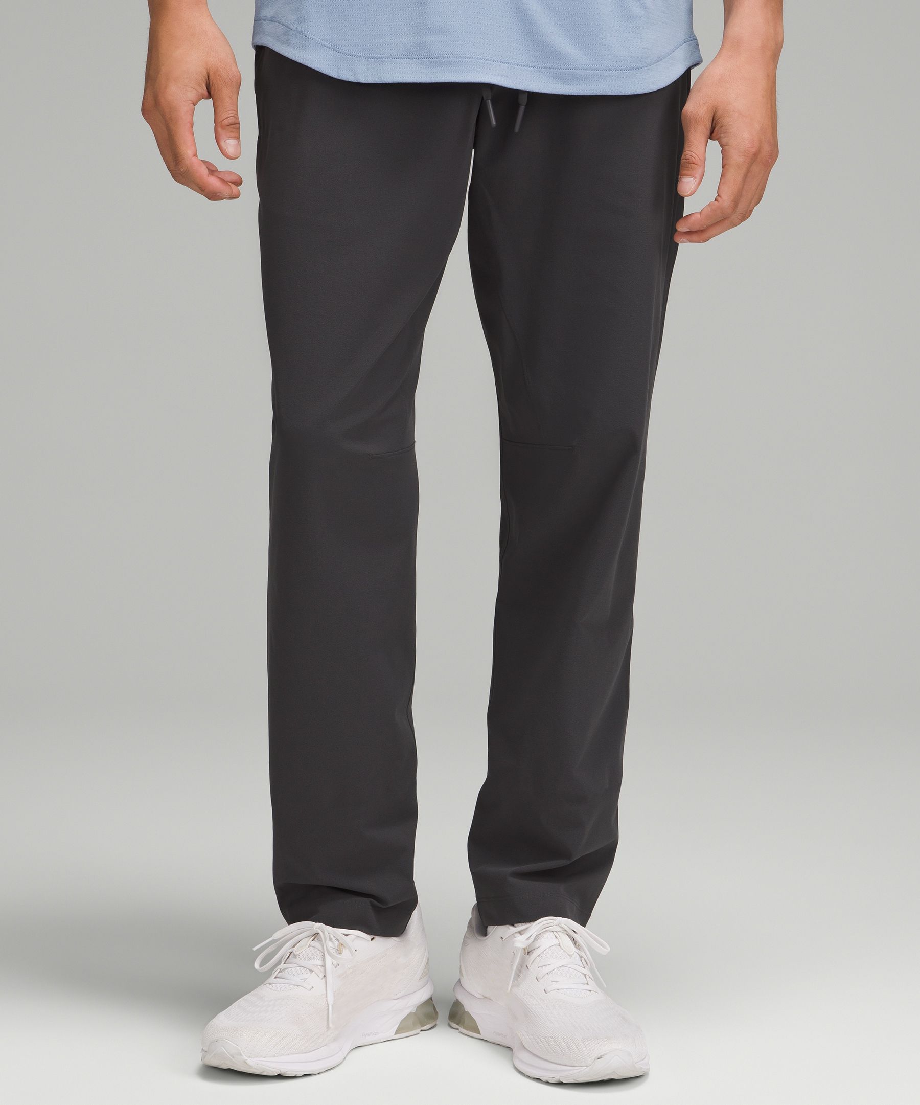 Pocketed, Drawstring. Designed for Training and Casual. Slim fit skims glutes and thighs, then tapers to hem. Intended to sit just below ankle for 36″-38″ inseam. Work out or hang out. These versatile pants are designed to keep up with every way you like to move. | lululemon – Men’s Zeroed In Slim-Fit Trousers Tall – Color Grey – Size XS