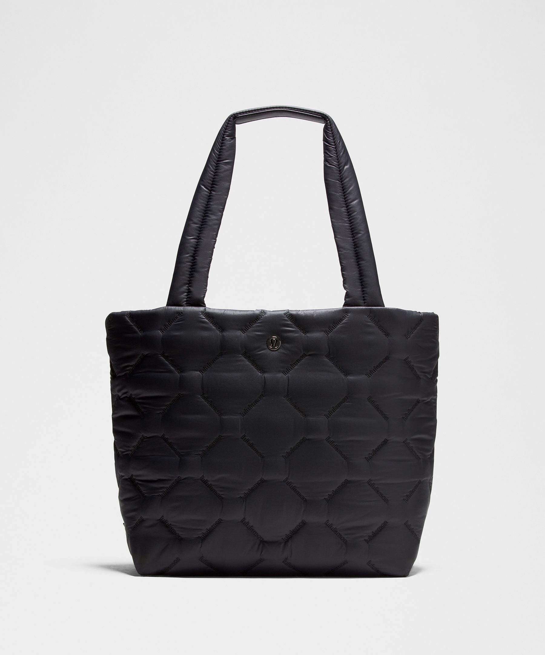 Water Repellant, Pocketed. Designed for Casual. Dimensions: W 32cm x D 16cm x H 32cm (12.6″ x 6.3″ x 12.6″). Volume: 12L. Softly does it. Daily essentials find a cushioned landing in this quilted tote that’s stamped all over with our wordmark design. | lululemon – Quilty Pleasures Tote Bag Medium 12L – Color Black