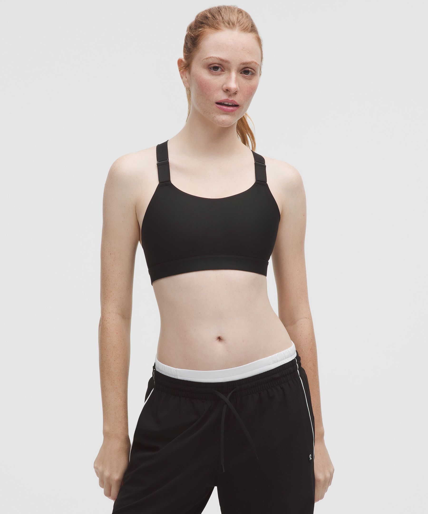 Lightweight. Designed for Training. Intended for medium-impact activities. All about adjustability. We designed this sports bra with a hook and loop system that allows you to easily tighten or loosen the straps while you’re wearing it. | lululemon – Women’s Adjustable-Fit Sports Bra Medium Support, B/C Cup – Color Black – Size XS