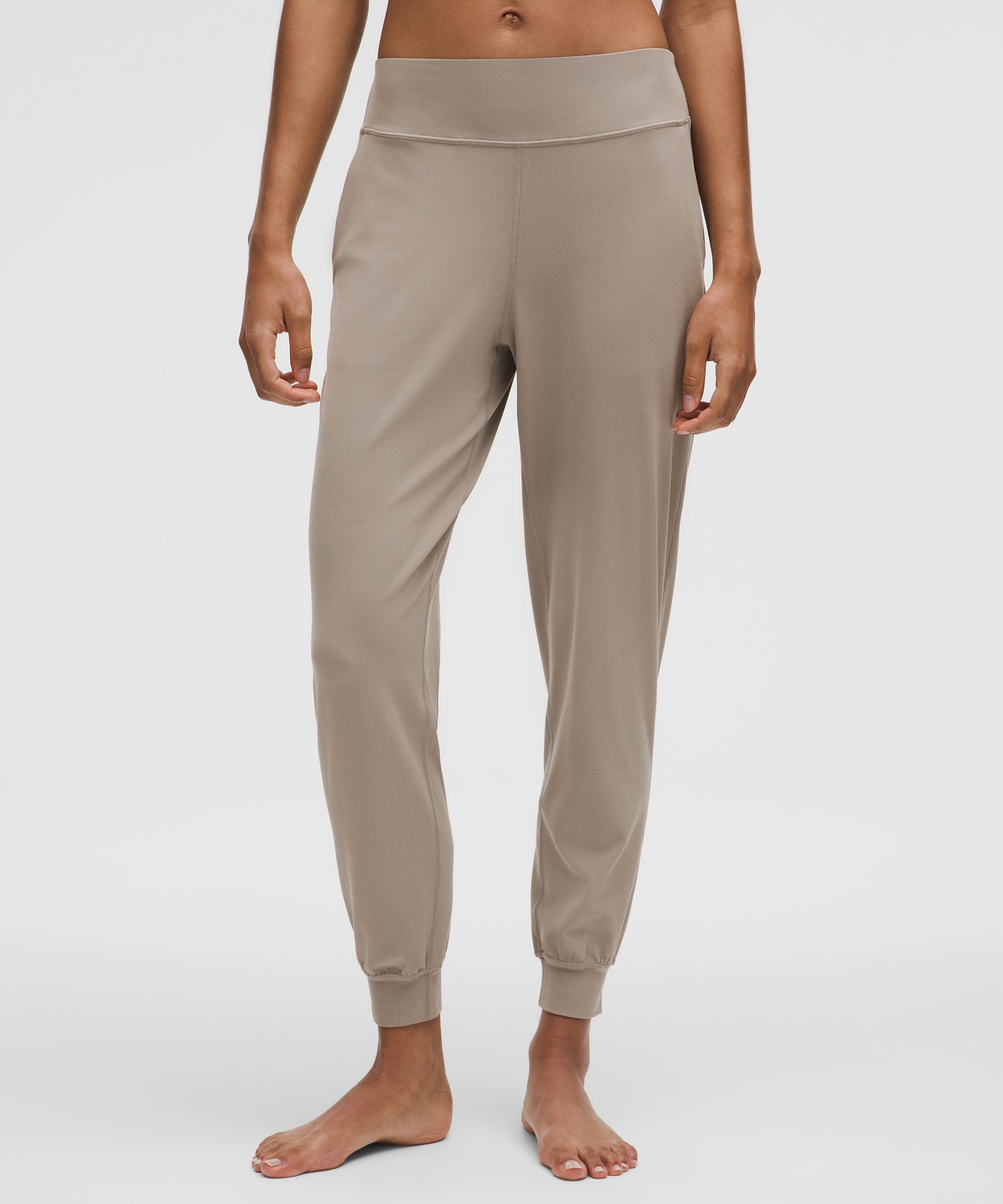 Lightweight, Pocketed. Designed for Yoga. Slim fit is streamlined with a little extra room in the seat, thighs, and legs to deliver that relaxed jogger look. Intended to sit at ankle for heights of 5’5″-5’8″. When feeling nothing is everything. We updated our buttery-soft lululemon Align joggers to give you that classic jogger look with a roomier fit, shorter cuffs, and discreet hand pockets. | lululemon – Women’s Align High-Rise Joggers Regular – Color Grey/Khaki – Size 4