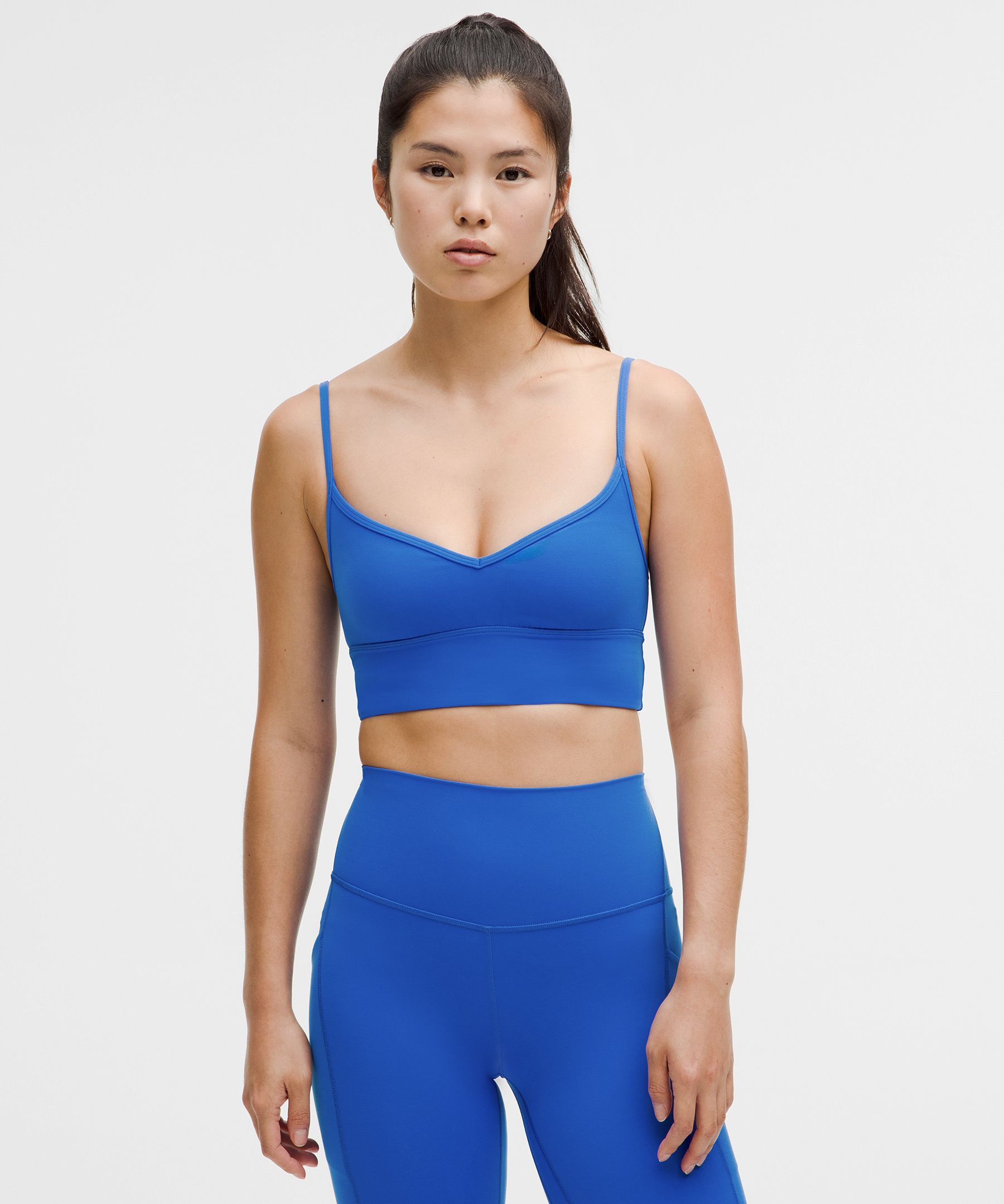 Designed for Yoga. Intended for low-impact activities. Feels (almost) as good as savasana. This version of the lululemon Align yoga bra wraps you in buttery softness and has a sweetheart neckline and narrow straps. | lululemon – Women’s Align Sweetheart Sports Bra Light Support, A/B Cup – Color Blue/Neon – Size 16