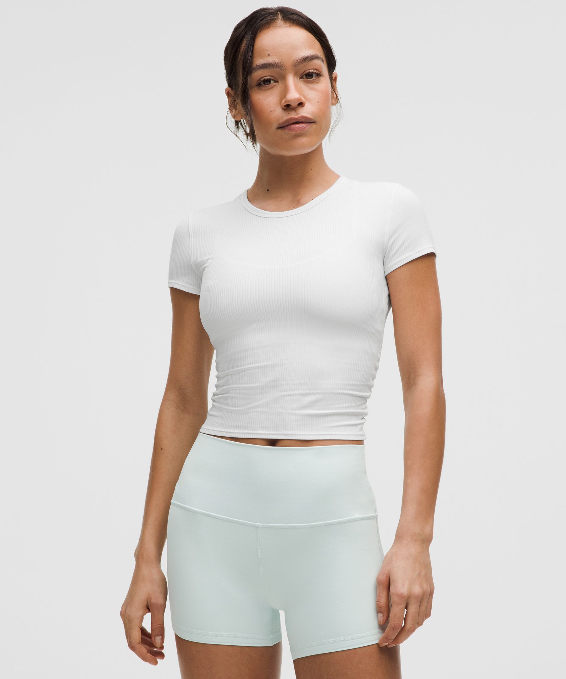Designed for Yoga. Contours your body. Not too short, not too long, just right around the waistband. Sitting twist, standing twist, a top with a twist. This version of our ribbed, buttery-soft yoga short sleeve has a back-twist detail. | lululemon – Women’s All It Takes Back-Twist Ribbed Short-Sleeve Shirt – Color White – Size 16