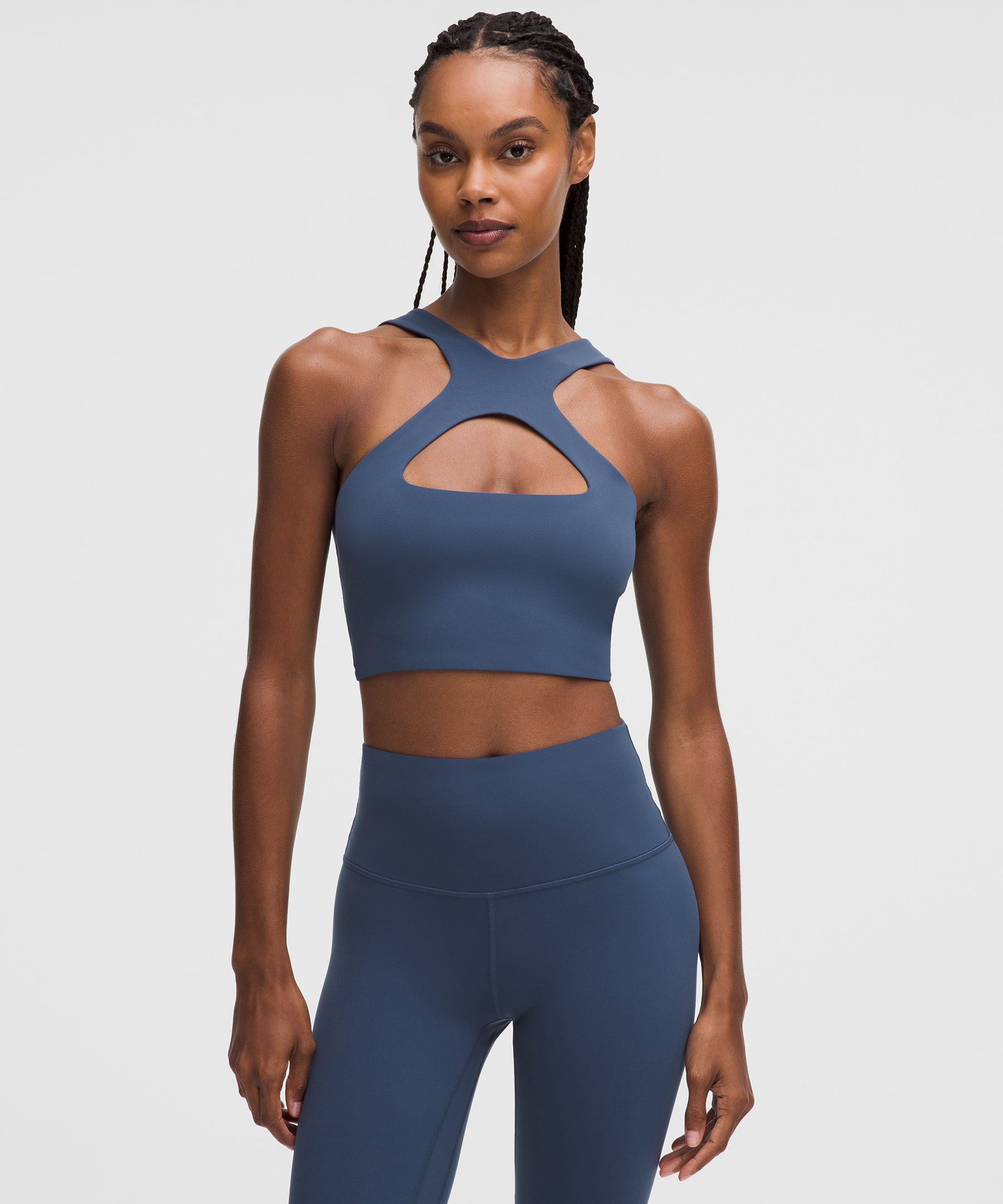 Lightweight. Designed for Yoga and Casual. Intended to provide light support for A-C cups during low-impact activities such as yoga, lounging, and everyday wear. Using high-stretch fabrics allowed us to remove the elasticized underband for an ultra-comfortable, all-day fit. The ultra-stretchy nature of the fabrics means that this bra feels comfortable during all phases of your cycle. Style that hits different. We designed this bra with super-stretchy, soft fabrics to give you a flexible fit for every phase of your cycle. Flip it back to front for a fresh look. | lululemon – Women’s Bend This Scoop and Cross Sports Bra Light Support, A-C Cups – Color Blue – Size Small/Medium