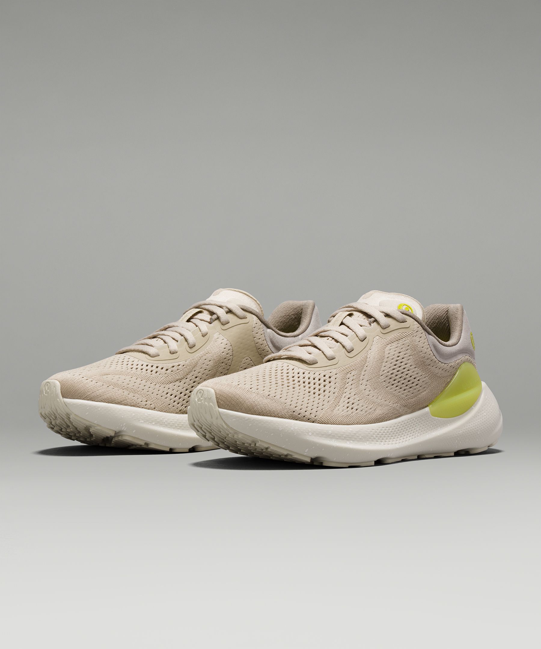 Seamless. Designed for Running. beyondfeel is an everyday running shoe with a smooth, supportive feel. Our shoes use US sizing and run small. To find your fit, measure your foot from heel to toe in cm and check it against the US size in our size chart. An extra 2mm of foam in the forefoot supports the way a woman’s foot lands. Maximum cushion. Effortless glide. In Beyondfeel, you’ll always feel like running. | lululemon – Women’s Beyondfeel Running Shoes – Color Khaki – Size 11.5