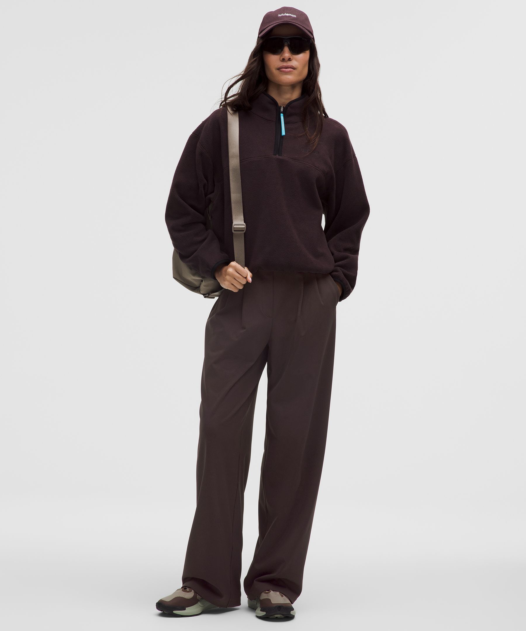 Pocketed, Drawstring. Designed for Casual. Relaxed fit is roomy through glutes and thighs. 29.5″ inseam, intended to skim the floor for heights of 5’4″ and under. Technical meets tailored. These pleated trousers feature classic design touches and use four-way stretch Luxtreme fabric for a powerfully sleek look and feel. | lululemon – Women’s Daydrift High-Rise Wide-Leg Trousers Short – Color Brown – Size Medium