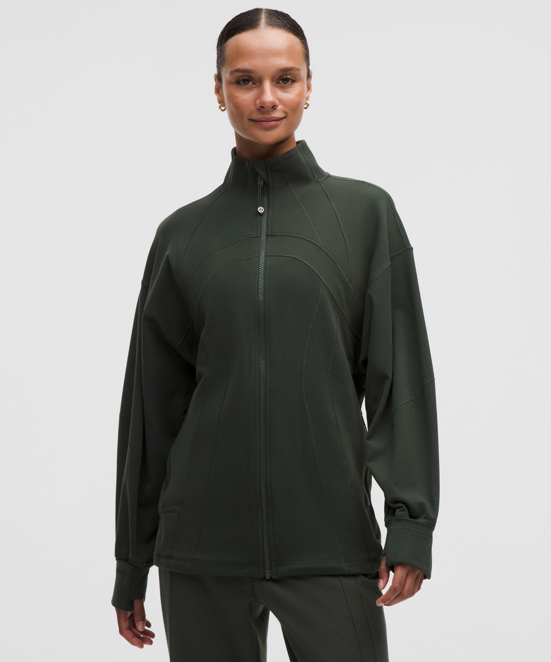 Drawstring, Pocketed, Thumbholes. Designed for Casual. An exaggerated fit that feels extra roomy. Long length keeps bum and hips covered. Defined, but keeps them guessing. This version of our fan-favourite jacket has an oversized fit and a cinchable shockcord hem that lets you switch up the shape and length. | lululemon – Women’s Define Oversized Jacket Luon – Color Green – Size 6