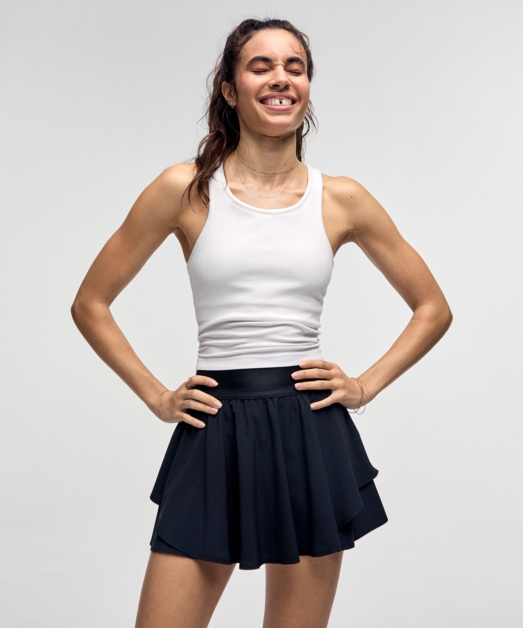 Shelf Bra, Seamless. Designed for Yoga and Casual. Intended to provide light support for B/C cups. Tight fit contours your body. Cropped length is cut above the waist-perfect with high-rise pants. Intended for low-impact activities. Seamless support. This one-and-done yoga tank is made using our seamless construction for a smooth fit and features built-in support for a fuss-free practice. | lululemon – Women’s Ebb to Street Cropped Racerback Tank Top Light Support, B/C Cup – Color White – Size 14