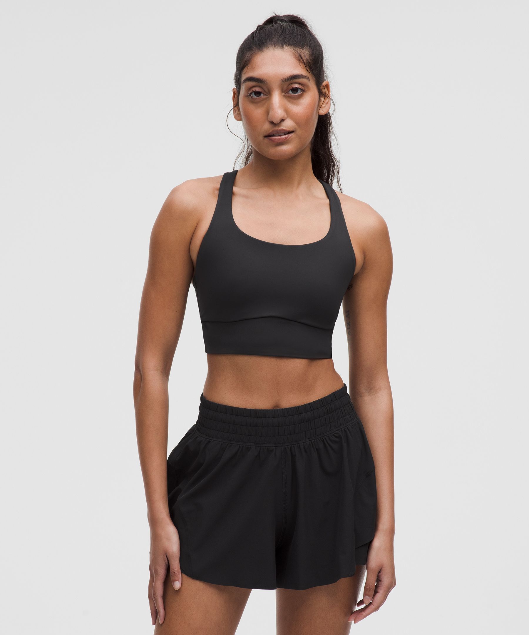 Designed for Yoga and Training. Intended for medium-impact activities. Medium support that doesn’t feel restrictive. Your built-in support system. This versatile sports bra has a strappy back design and a comfortably supportive fit for all the ways you love to move. | lululemon – Women’s Energy Longline Sports Bra Medium Support, B-D Cups Evolve – Color Black – Size XL