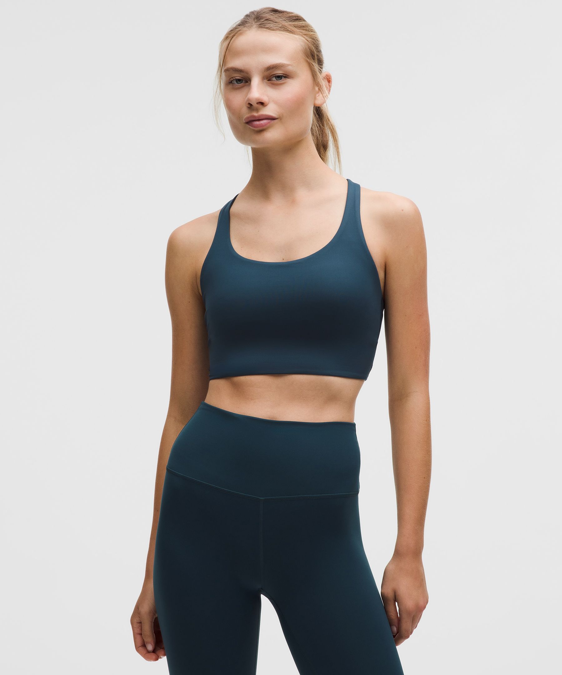 Designed for Yoga and Training. Intended for medium-impact activities. Medium support that doesn’t feel restrictive. Your built-in support system. This versatile sports bra has a strappy back design and a comfortably supportive fit for all the ways you love to move. | lululemon – Women’s Energy Longline Sports Bra Medium Support, B-D Cups Evolve – Color Blue/Grey – Size XS