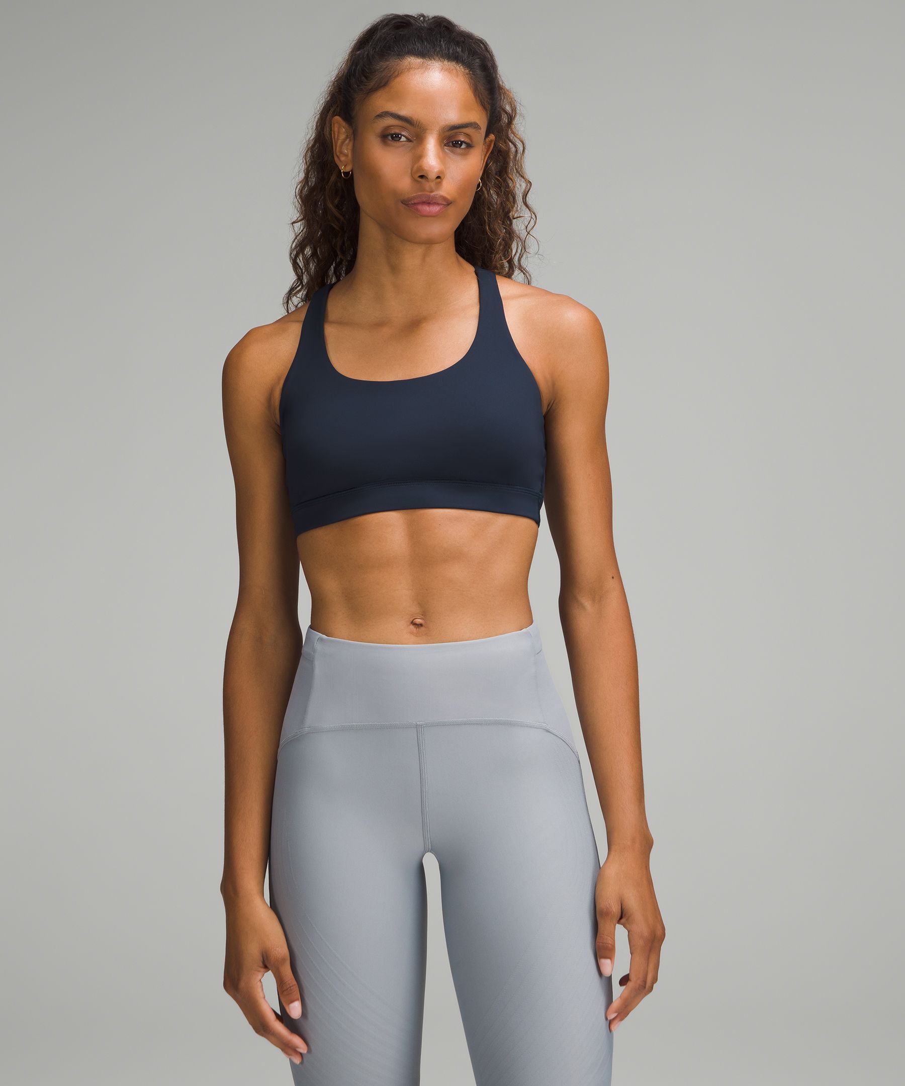 Designed for Yoga and Training. Intended for medium-impact activities. Voted most likely to be worn multiple times a week. This all-sport bra is a favourite for comfort and versatility. | lululemon – Women’s Energy Sports Bra Medium Support, B-D Cups – Color Blue – Size 16