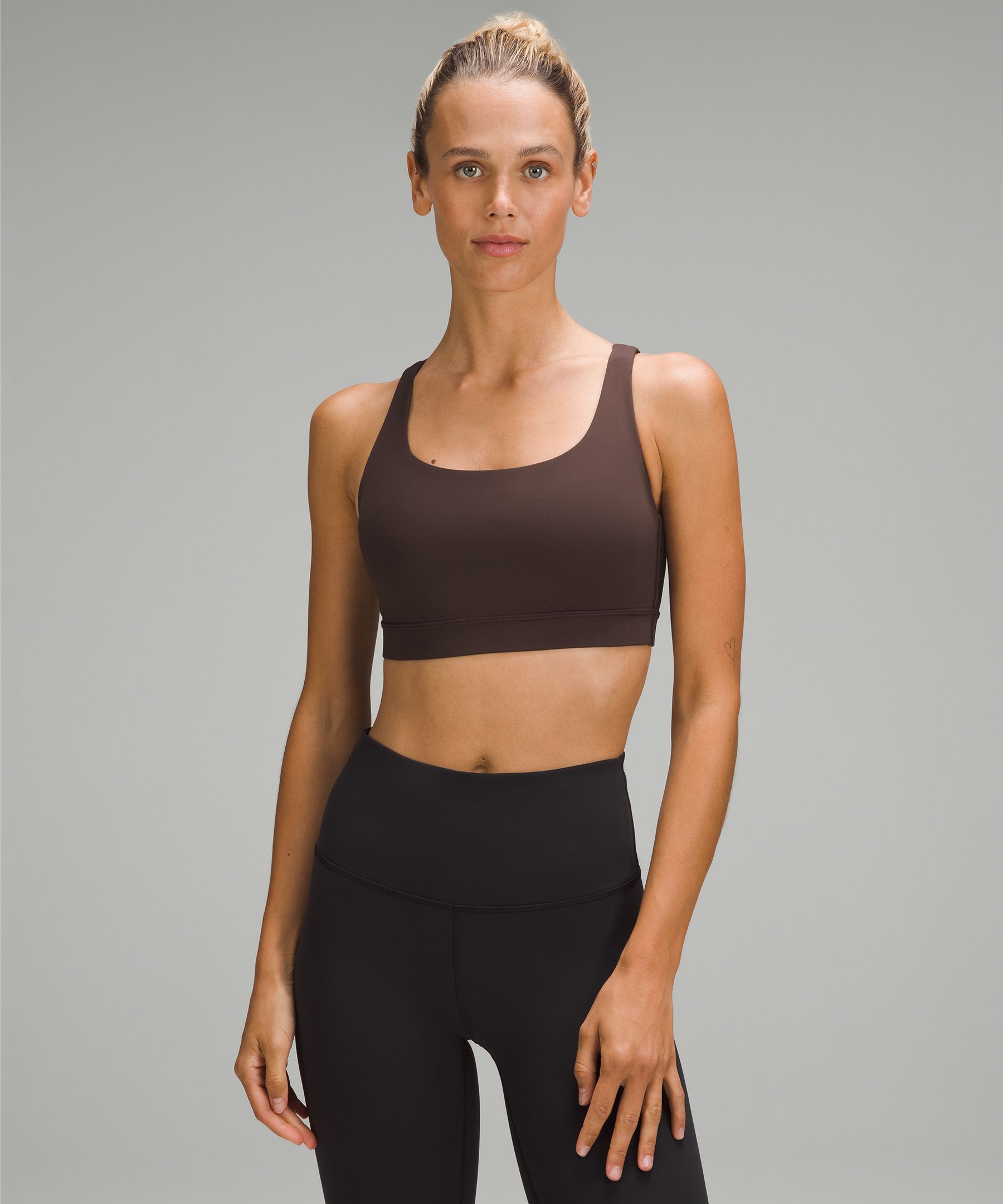 Designed for Yoga and Training. Intended for medium-impact activities. Voted most likely to be worn multiple times a week. This all-sport bra is a favourite for comfort and versatility. | lululemon – Women’s Energy Sports Bra Medium Support, B-D Cups – Color Brown – Size 10