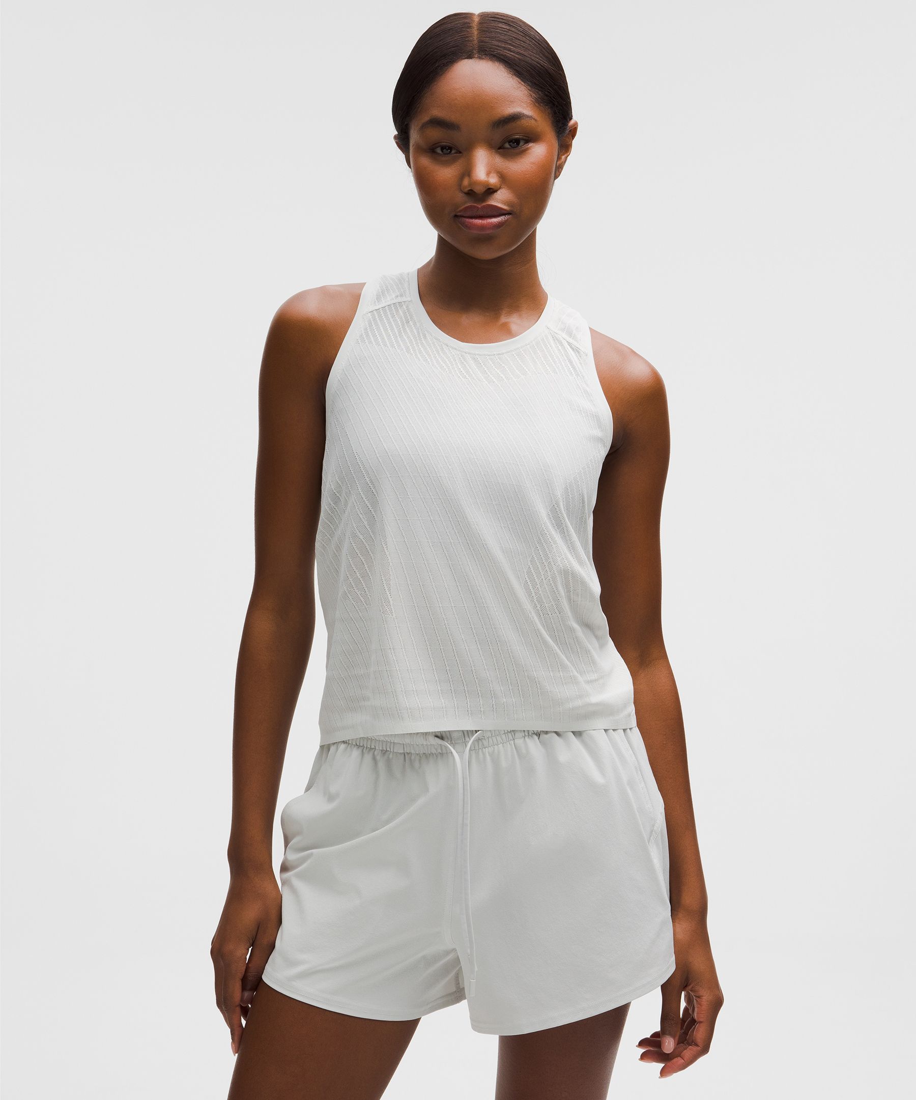 Lightweight, Reflective. Designed for Running. An easy fit that floats away from your body. Not too short, not too long, just right around the waistband. Run in the heat without running hot. Using a unique, open-knit mesh fabric, this tank targets ventilation to where you need it most. | lululemon – Women’s Fast and Free Airflow Cropped Running Tank Top – Color White – Size 18