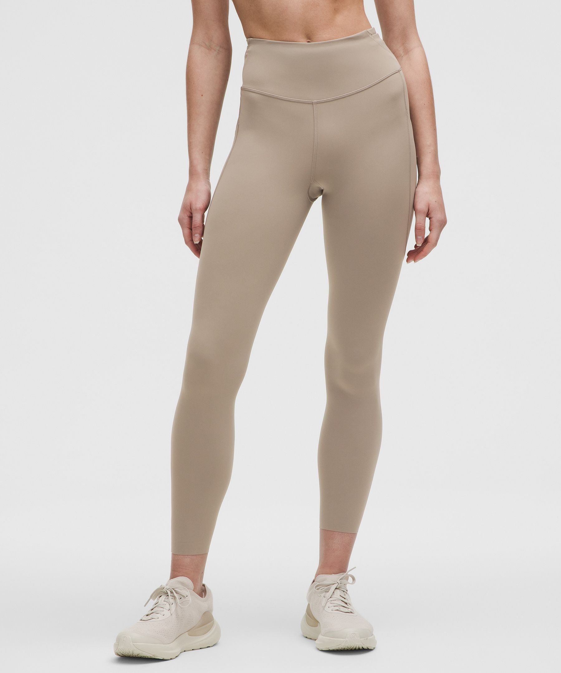 Reflective, Drawstring, Pocketed, Lightweight, Seamless. Designed for Running. Intended to sit above ankle. Set your run free. This five-pocket version of our Fast and Free tight has seam-free inner thighs and a streamlined waistband to maximize that smooth, weightless feeling. | lululemon – Women’s Fast and Free High-Rise Tight Leggings 5 Pocket – 25″ – Color Grey/Khaki – Size 10