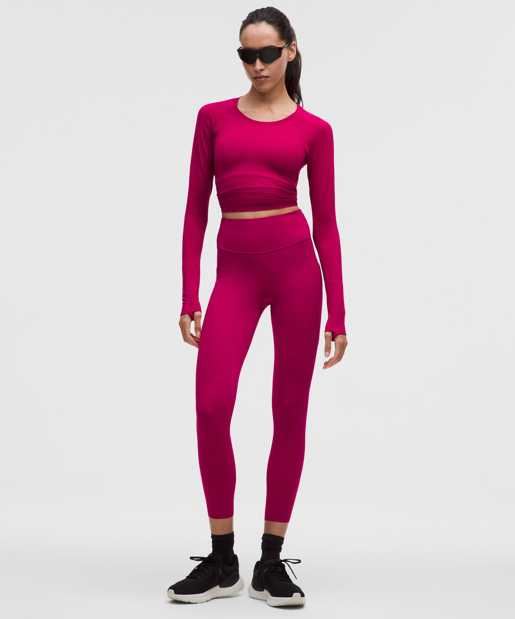 Reflective, Drawstring, Pocketed, Lightweight, Seamless. Designed for Running. Intended to sit above ankle. Set your run free. This five-pocket version of our Fast and Free tight has seam-free inner thighs and a streamlined waistband to maximize that smooth, weightless feeling. | lululemon – Women’s Fast and Free High-Rise Tight Leggings 5 Pocket – 25″ – Color Pink – Size 22