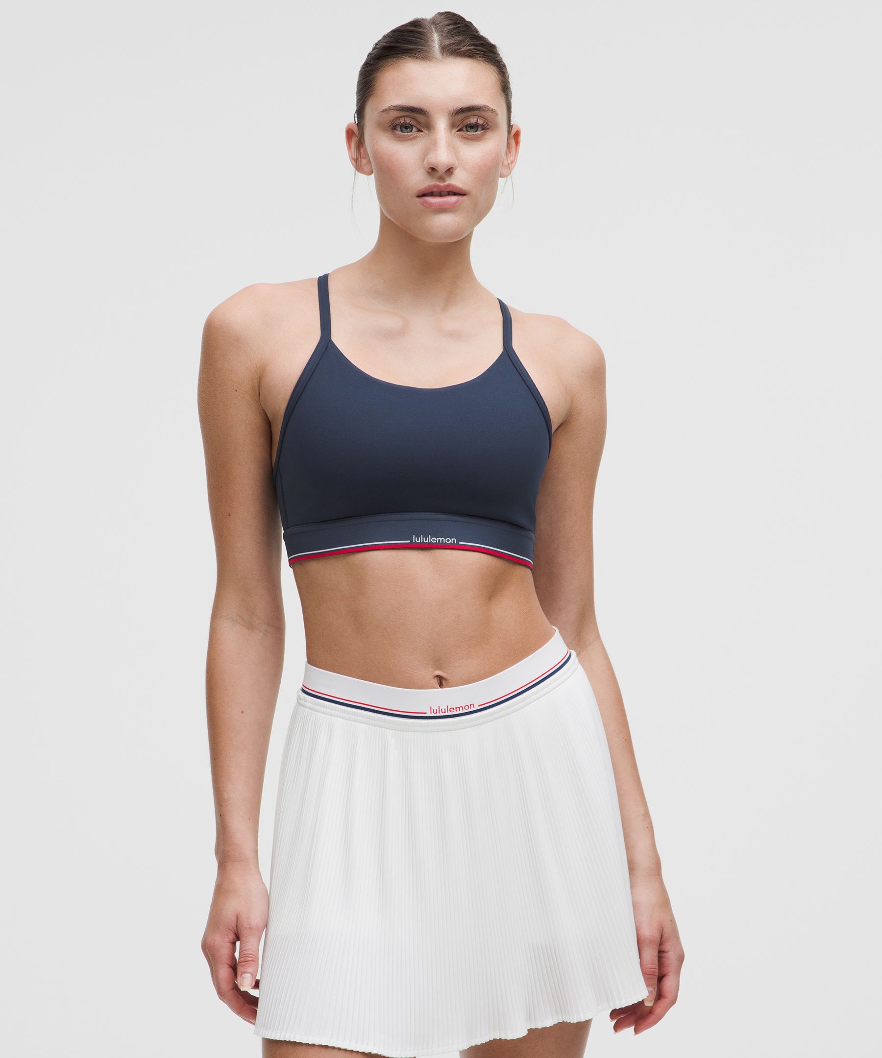 Lightweight. Designed for Tennis and Training. Intended for medium-impact activities. Delicate details, powerful performance. Inspired by the look of our fan-favourite Flow Y bra, we designed this sports bra with supportive construction for dynamic movement. | lululemon – Women’s Flow Y Mid-Support Sports Bra Logo B/C Cup – Color Blue – Size 16