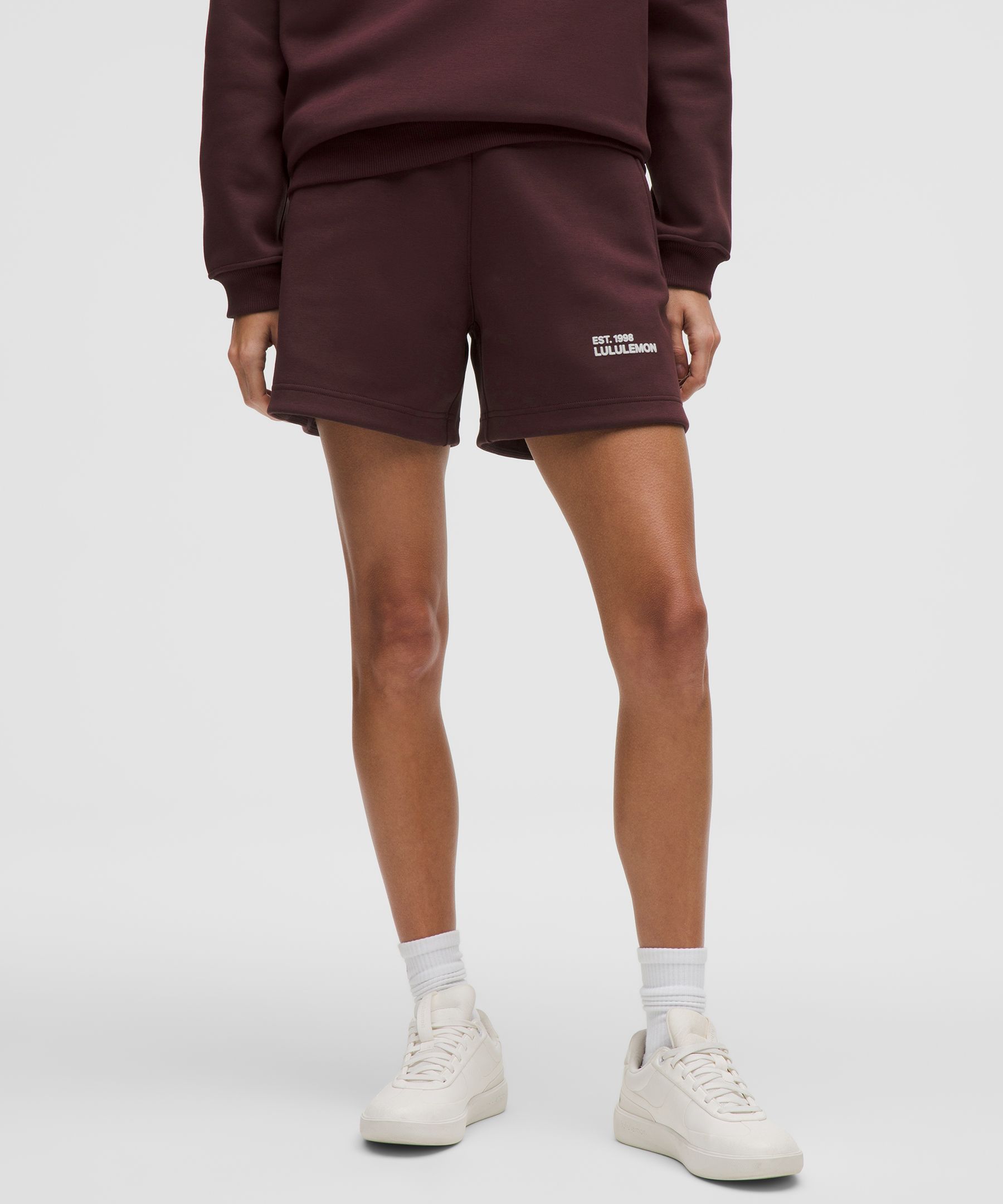 Drawstring, Pocketed. Designed for Casual. Oversized fit is exaggerated and feels extra roomy. Heavyweight champ. These thick shorts deliver softness and warmth in a roomy oversized fit. | lululemon – Women’s Heavyweight Sweatshort – 5″ – Color Purple – Size Large
