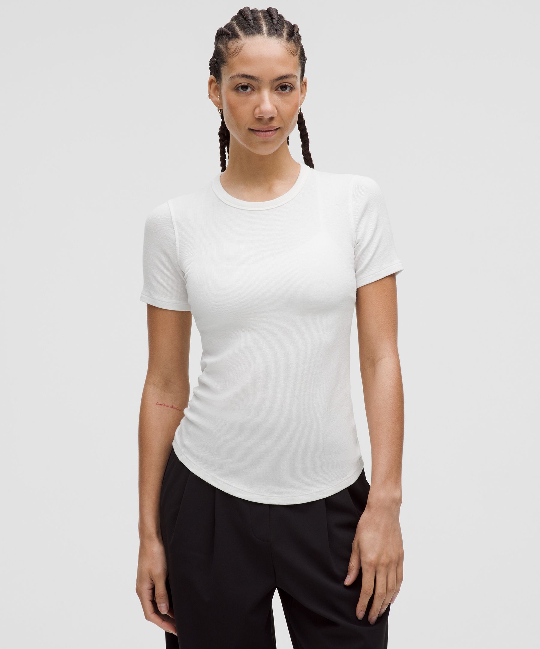 Lightweight. Designed for Casual. Contours your body. Sits below the waistband for moderate, everyday coverage. Super soft and loves to layer. This lightweight short sleeve delivers just-right stretch and a second-skin fit that wears well on its own or under a hoodie or a button up. | lululemon – Women’s Hold Tight Short-Sleeve Shirt – Color White – Size 24