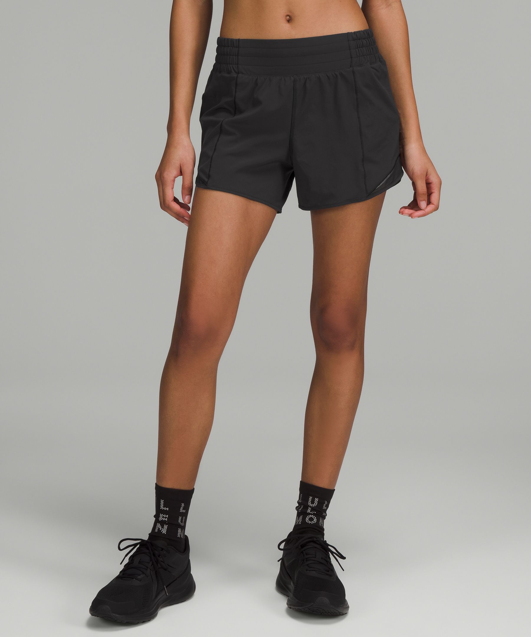 Pocketed, Reflective, Drawstring. Designed for Running. Born to run but with room for everything else. These iconic shorts are cut with a wider leg so you can move freely through every stride, squat, and step up. | lululemon – Women’s Hotty Hot High-Rise Lined Shorts – 4″ – Color Black – Size 6